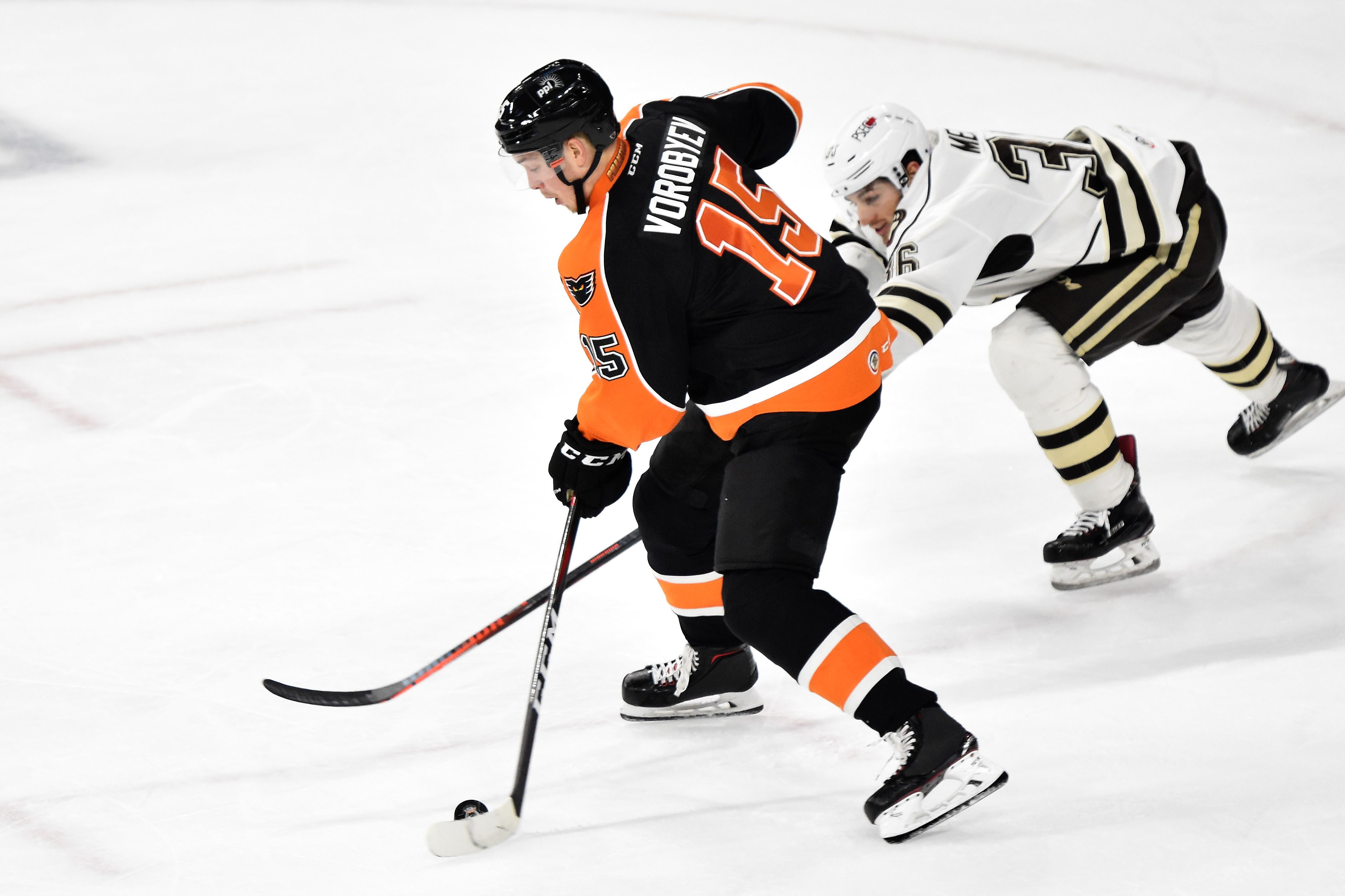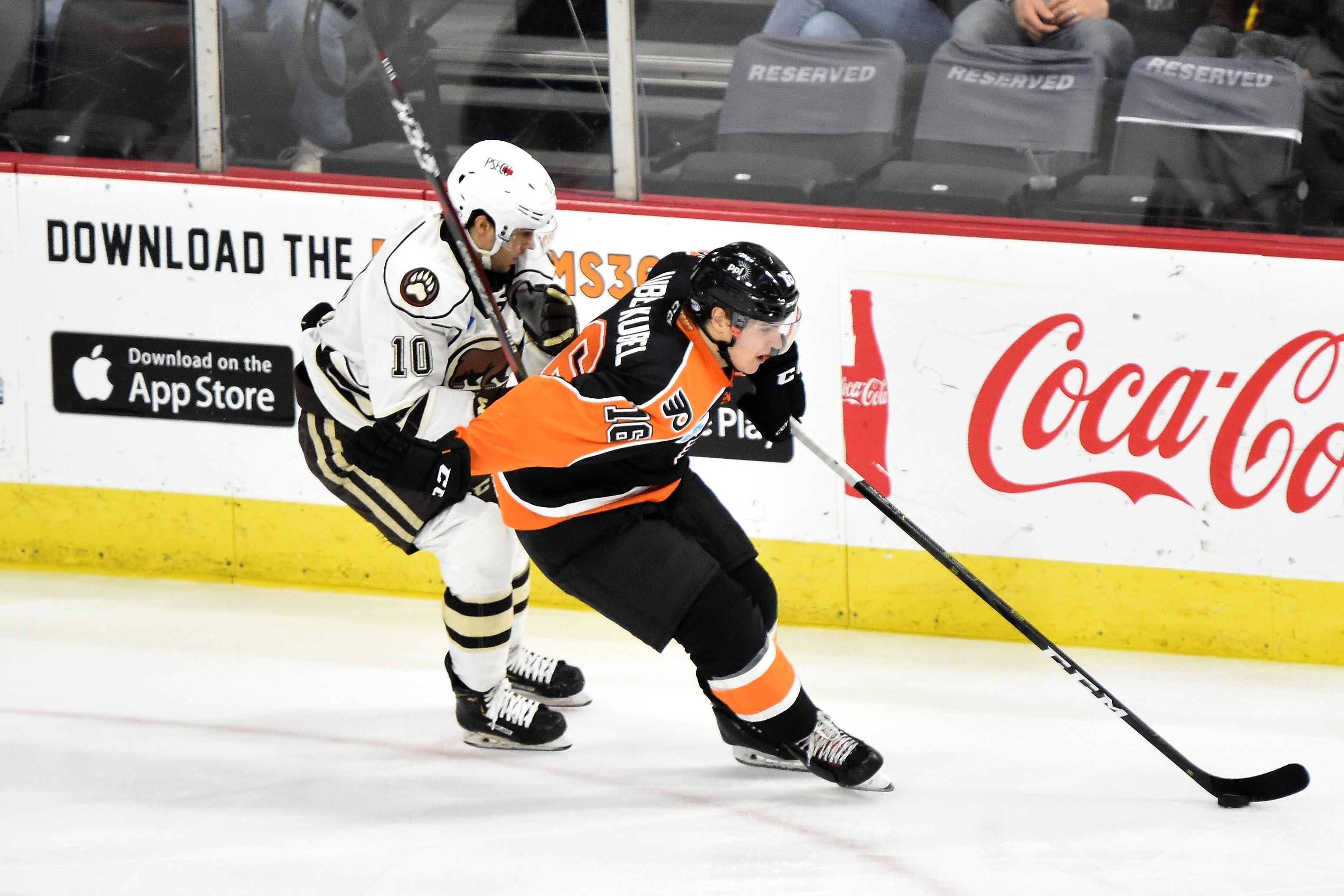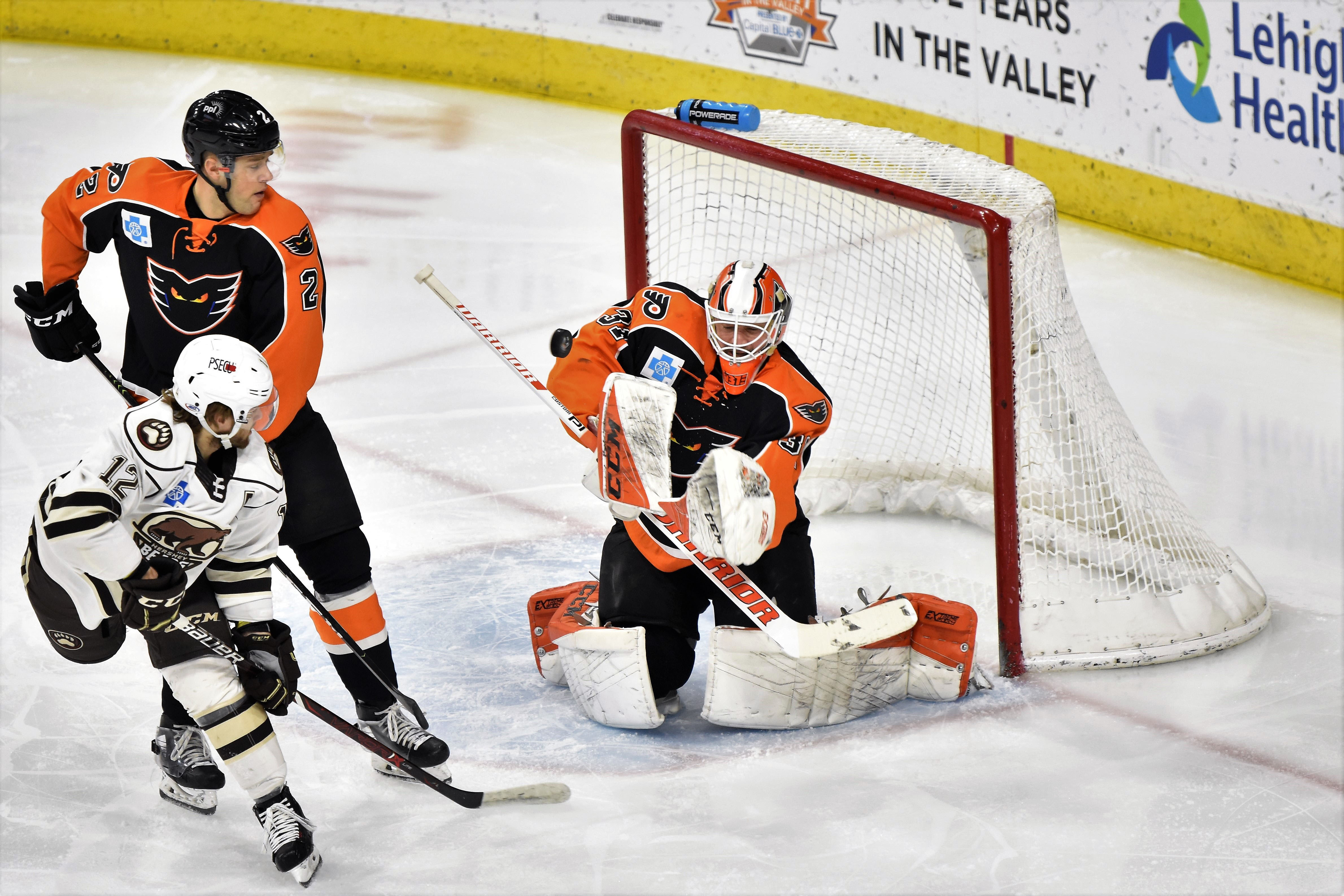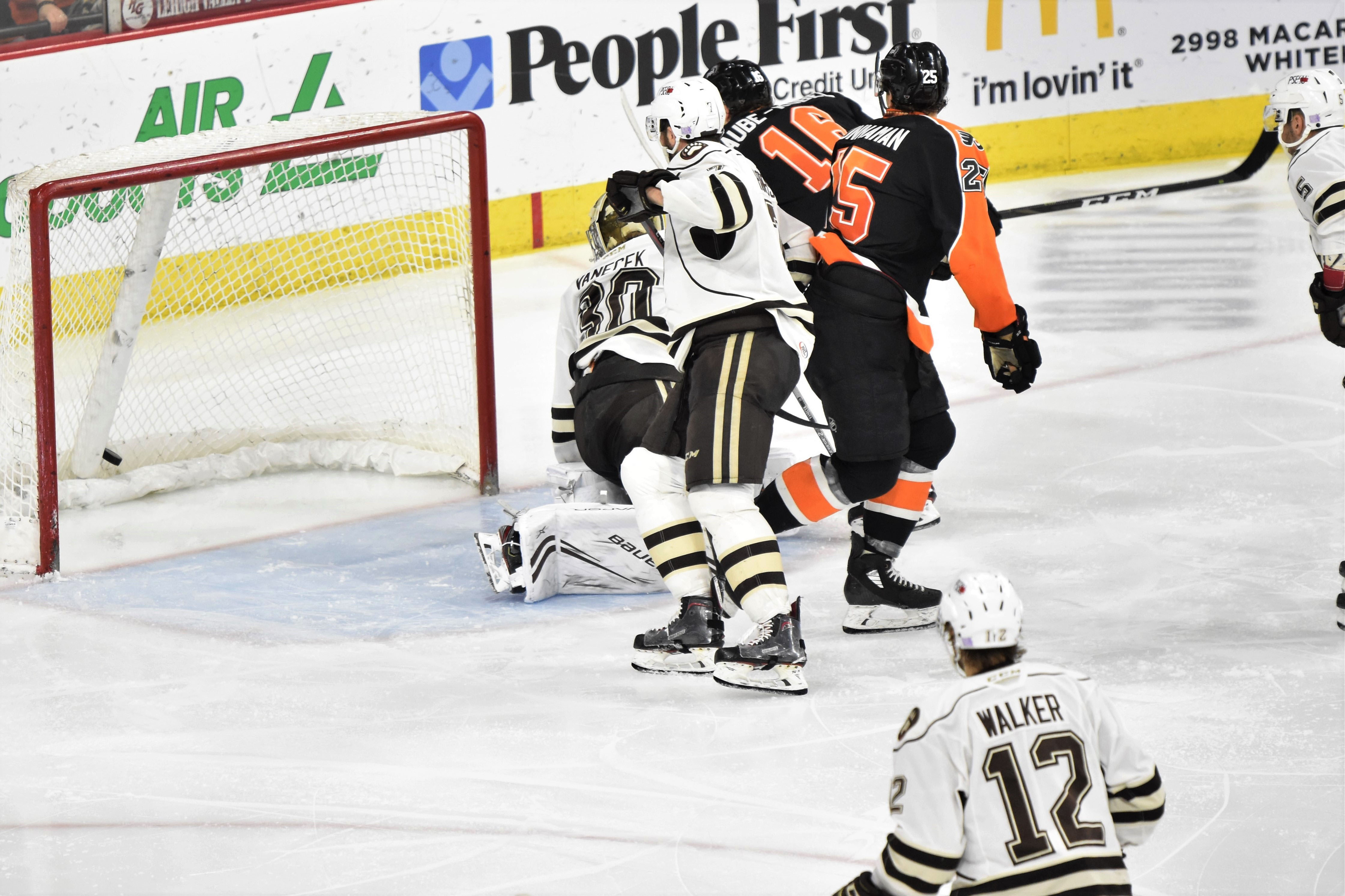 For the second straight night, the Phantoms drew first blood, but the Bears rallied right back. Only 7:38 in, Tyrell Goulbourne opened the scoring on a rebound after depositing a Jori Lehtera shot past Vitek Vanecek inside the blue paint. Before the period came to a close, Malenstyn scored twice on 2-time NHL All-Star goaltender Brian Elliott. First at 13:52, Malenstyn redirected a Ryan Sproul shot through the five-hole of Elliott.
