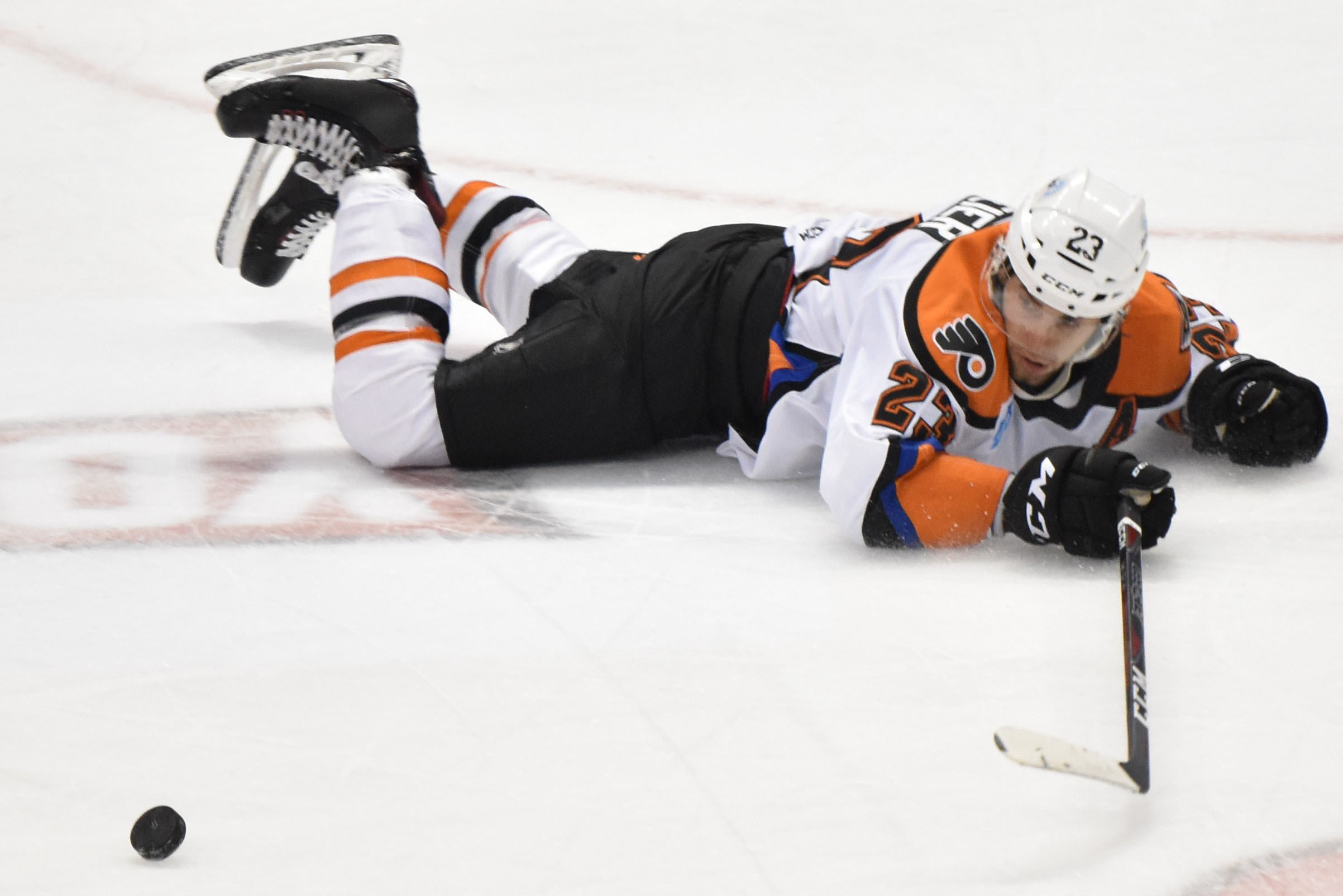 Mike Sgarbossa officially chased Komm from the game with a wrist shot at 6:36 for his 17th goal of the season. Before the period expired, Leier once again brought Lehigh Valley within one goal after scoring on the power play for his second of the night at 14:13. Shots after 20 minutes were 12-9 Phantoms with the Bears in front, 3-2.