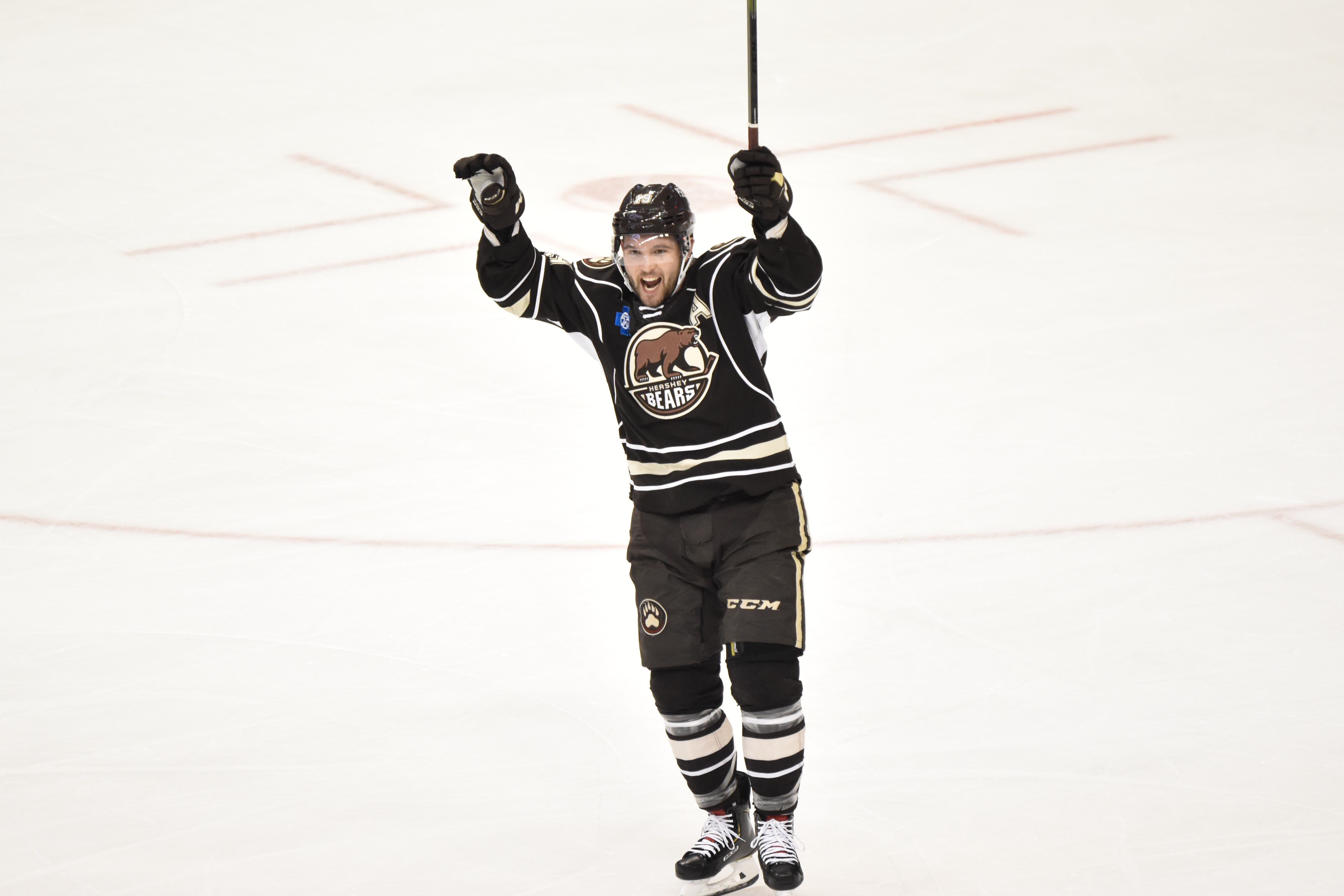 The Bears dictated play in the first period with an 18-4 shot advantage, but both teams traded tallies for a 1-1 score at intermission. Liam O’Brien put the Bears in front at the 11:22 mark after blazing to the net along the left wing. Mike Sgarbossa entered the zone through the middle of the ice, and Riley Barber connected with a streaking O’Brien, who beat Sound Tigers goaltender Christopher Gibson low to the ice.