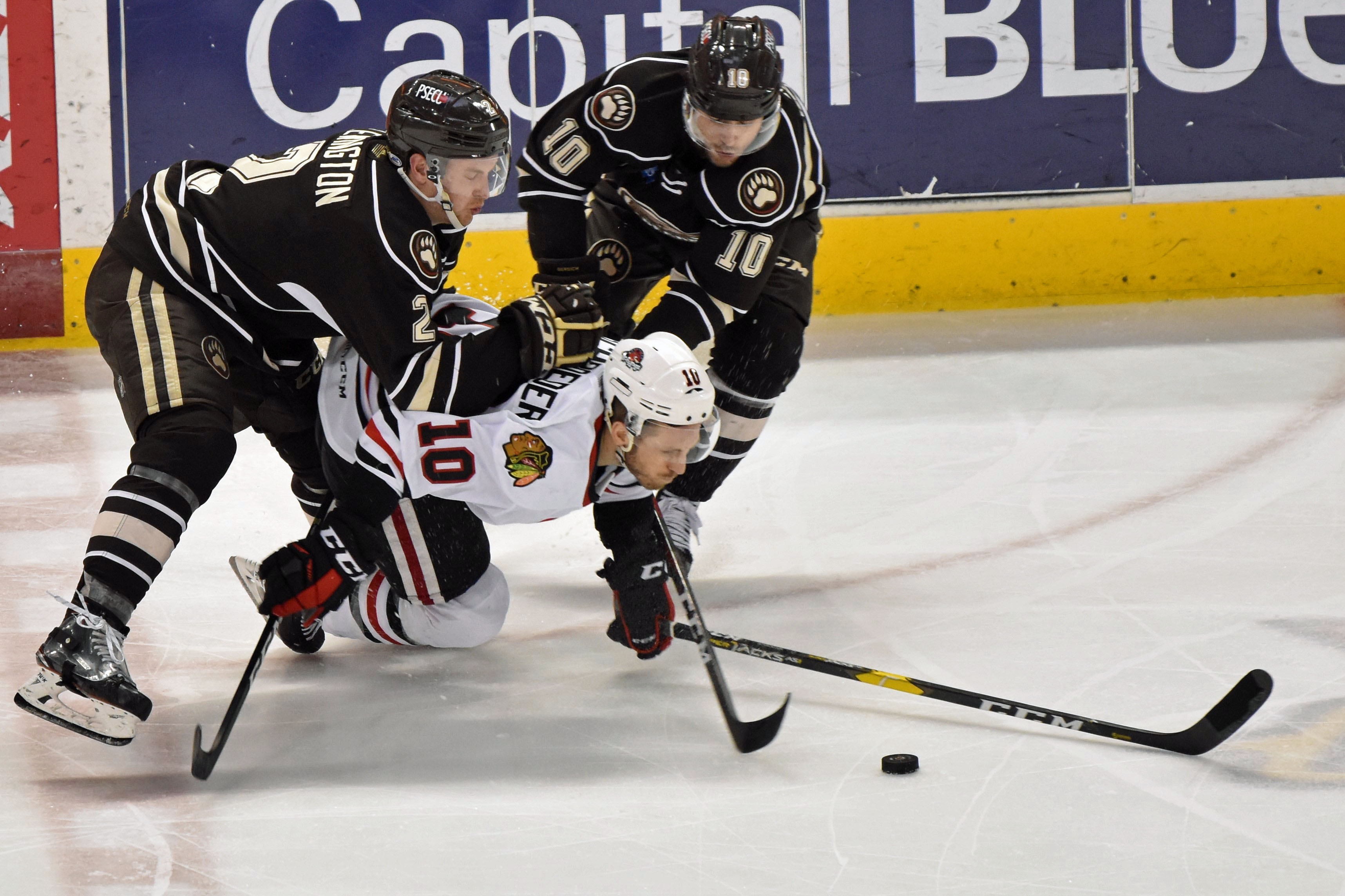 In the opening minute, the Bears immediately went onto the penalty kill after Jonas Sigenthaler was whistled for holding only 33 seconds in. At 1:21, Peter Holland blasted his team-best, 21st goal of the season past Ilya Samsonov to cash in for Rockford on the man-advantage.