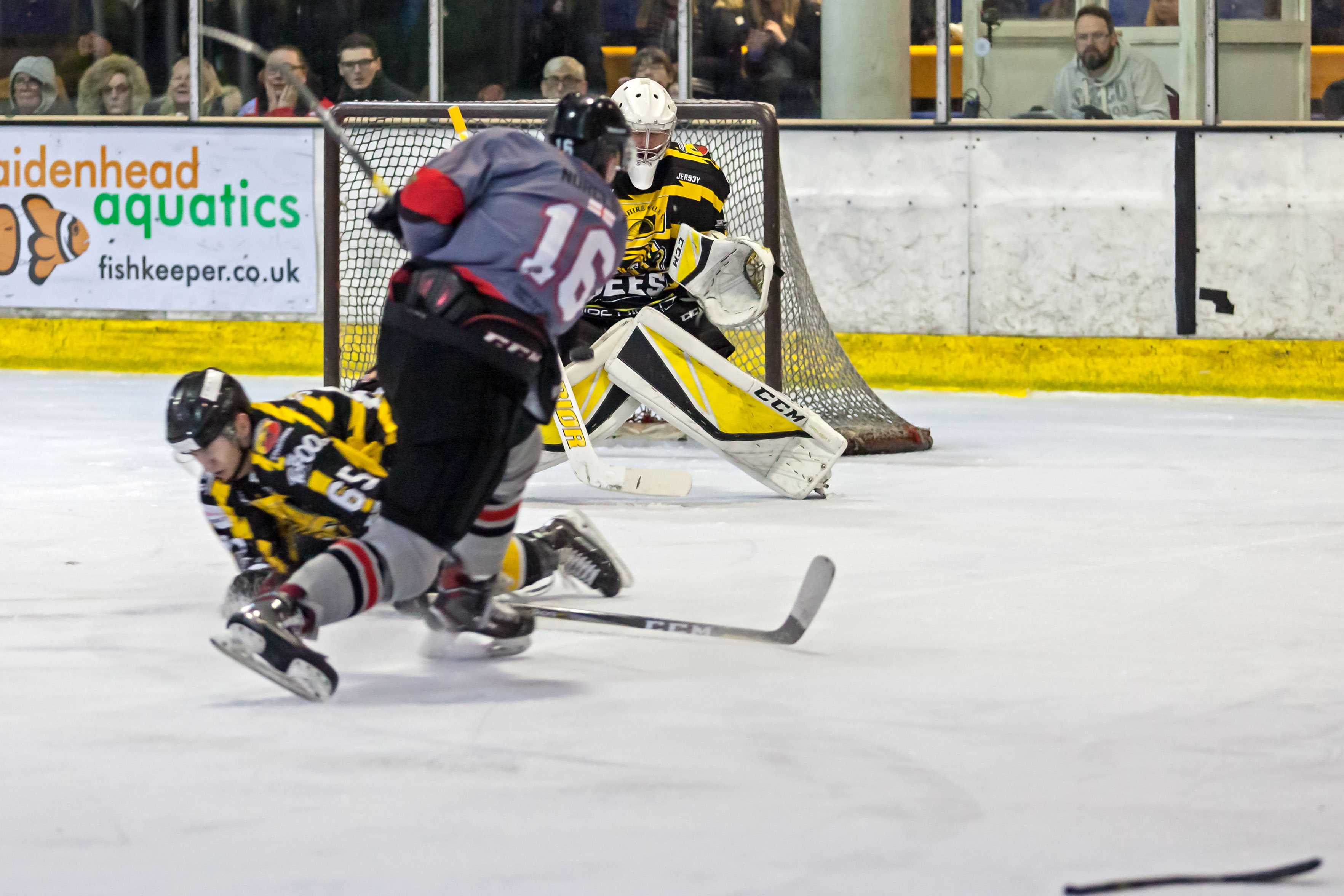 A second period of long shifts was 17.46 old before the next goal in the game which came when George Norcliffe scored for the Bison to make it 0-4 and leave the Bees an uphill task for the final period.