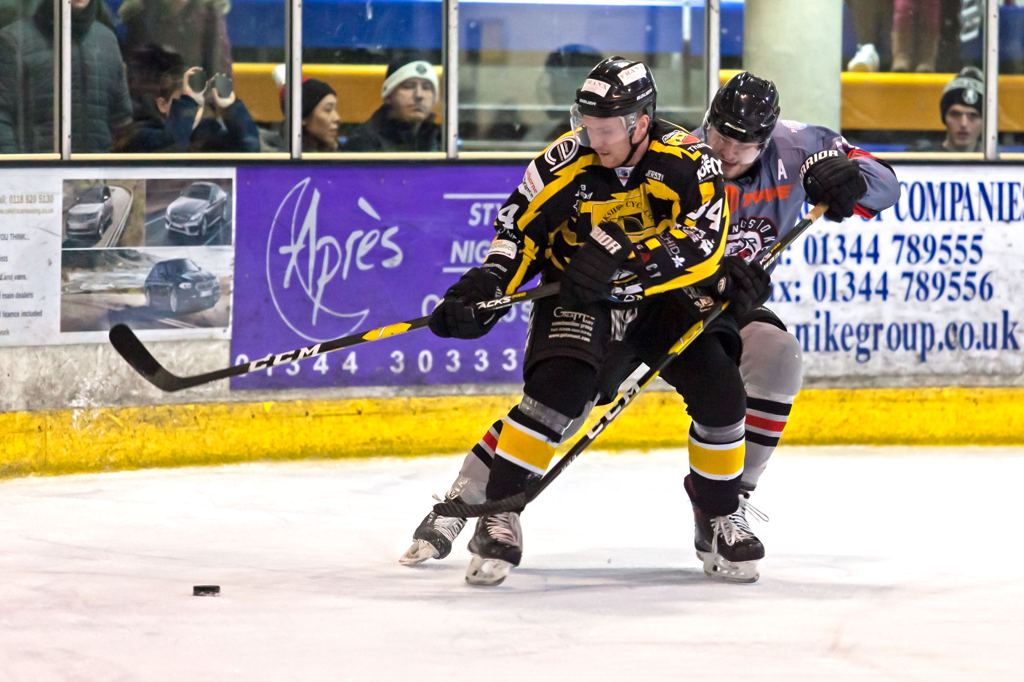 1.31 into the final period Norcliffe netted his second ahead of a holding the stick call against Ryan Watt at 44.08 which saw him also pick up 2 10 minute misconduct penalties meaning an automatic game penalty. With a powerplay in their favour Bees scored their opener at 46.09 when Zach Milton netted but Harding replied for the Bison at 49.46 with their final goal of the game. The last strike of the game came at 52.40 when James Galazzi netted a powerplay goal for the Bees.