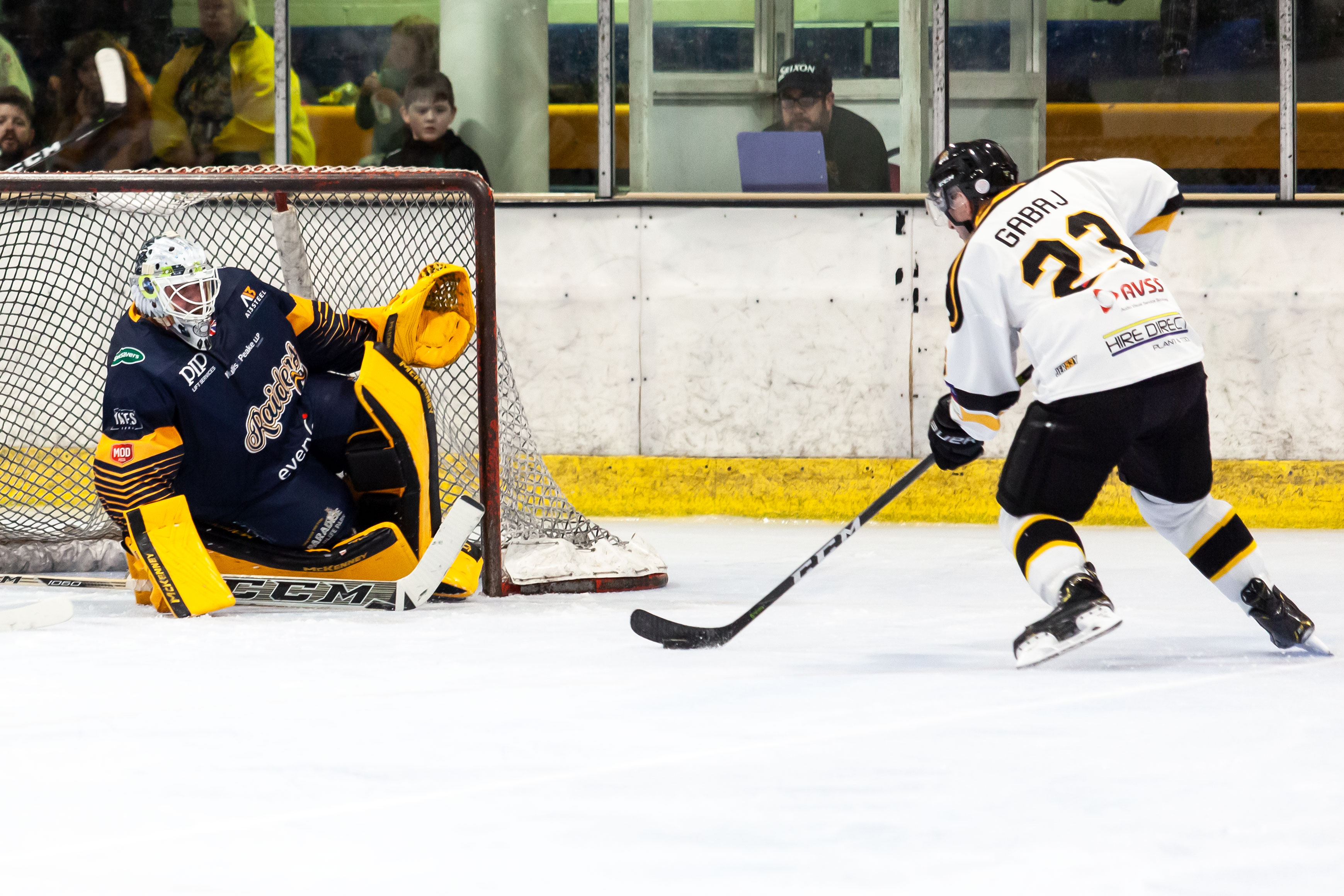 The opening 10 minutes of the third period saw no additions to the scoring but Gabaj’s second at 52.41 opened the flood gates. Josh Ealey-Newman scored at 53.01 before Brandon Ayliffe netted the Raiders’ fourth at 54.47. Bees hadn’t finished yet though with Zack Milton scoring at 55.00 before a shorthanded strike from Gabaj at 58.19 completed his hattrick. Josh Martin scored an unassisted goal at 59.22 to bring up the Bees eleventh of the night.