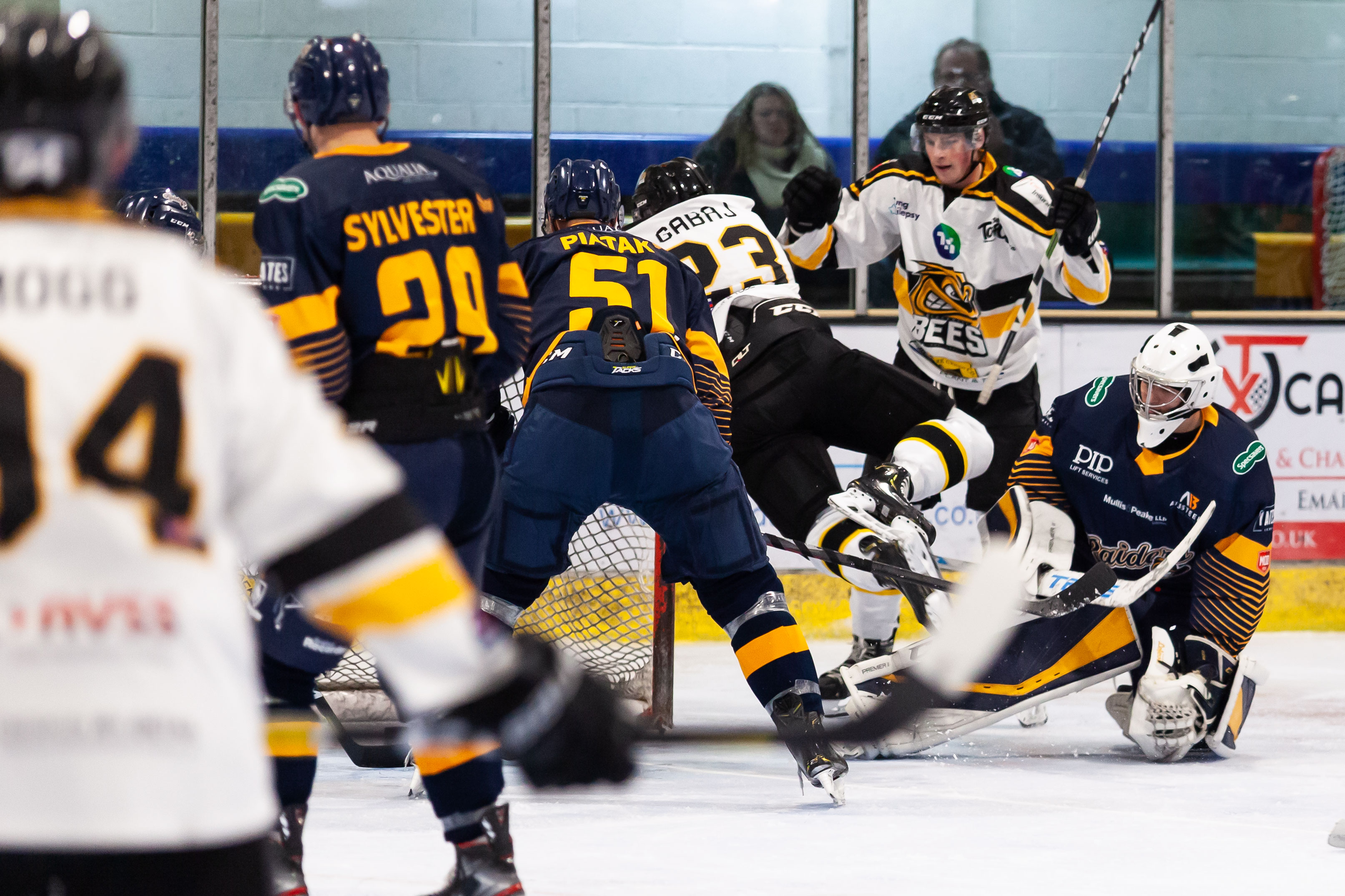 Thomas Adams replaced Greg Blais for the second period and the Bees set about opening their lead. Aidan Doughty netted on the powerplay at 23.18 for 3-1 but Jake Sylvester scored a powerplay goal at 25.05. Dominik Gabaj netted at 26.12 but his was matched with Aaron Connolly scoring at 26.49. Two back to back goals from debutant Caly Robertson did open a gap at 27.55 and 31.57.