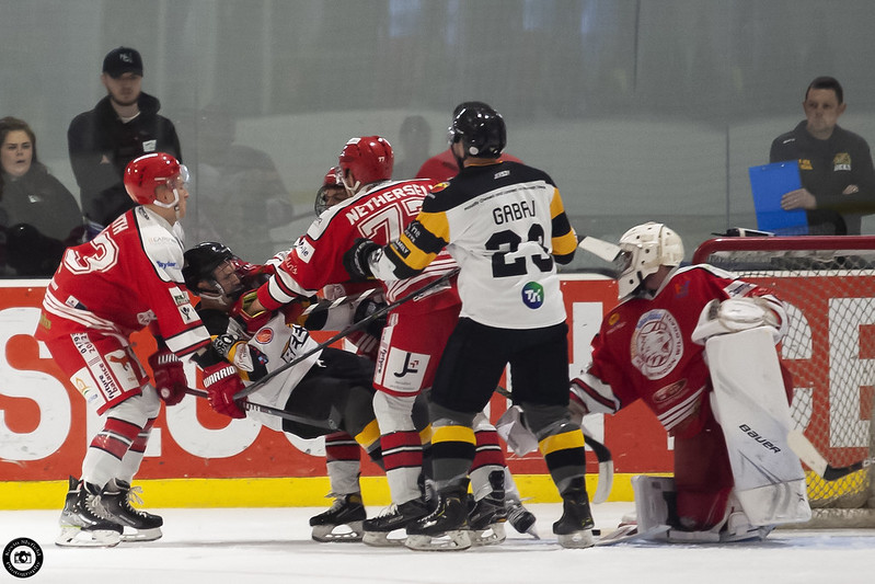 It would be the Wildcats who netted the first of the final period through Balint Pakozdi at 42.56 but Niklas Örnmarker scored at 44.39. Just 10 seconds later the home team kept their hopes alive through Emil Svec but Bees closed out strong with a powerplay goal from Josh Martin at 49.33 followed by Smith’s second, this time a powerplay goal at 54.03 and Will Stead netting at 56.55.