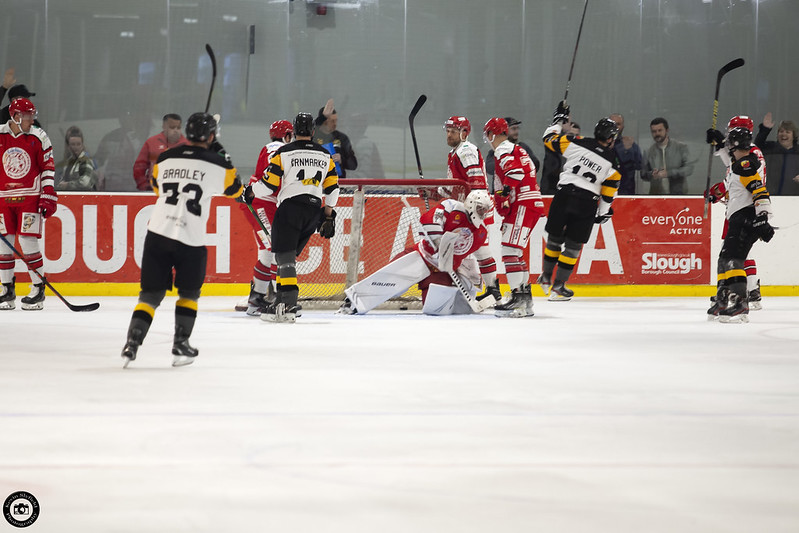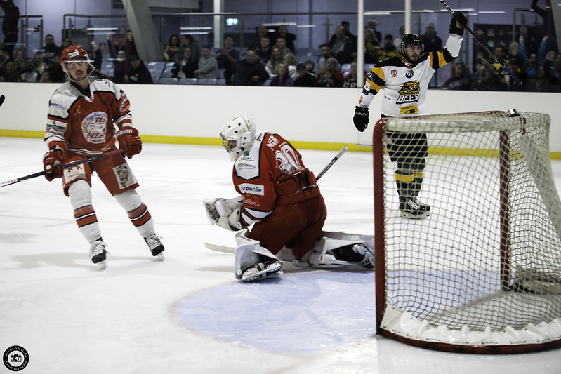 It would be the Wildcats who netted the first of the final period through Balint Pakozdi at 42.56 but Niklas Örnmarker scored at 44.39. Just 10 seconds later the home team kept their hopes alive through Emil Svec but Bees closed out strong with a powerplay goal from Josh Martin at 49.33 followed by Smith’s second, this time a powerplay goal at 54.03 and Will Stead netting at 56.55.