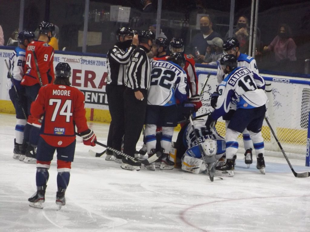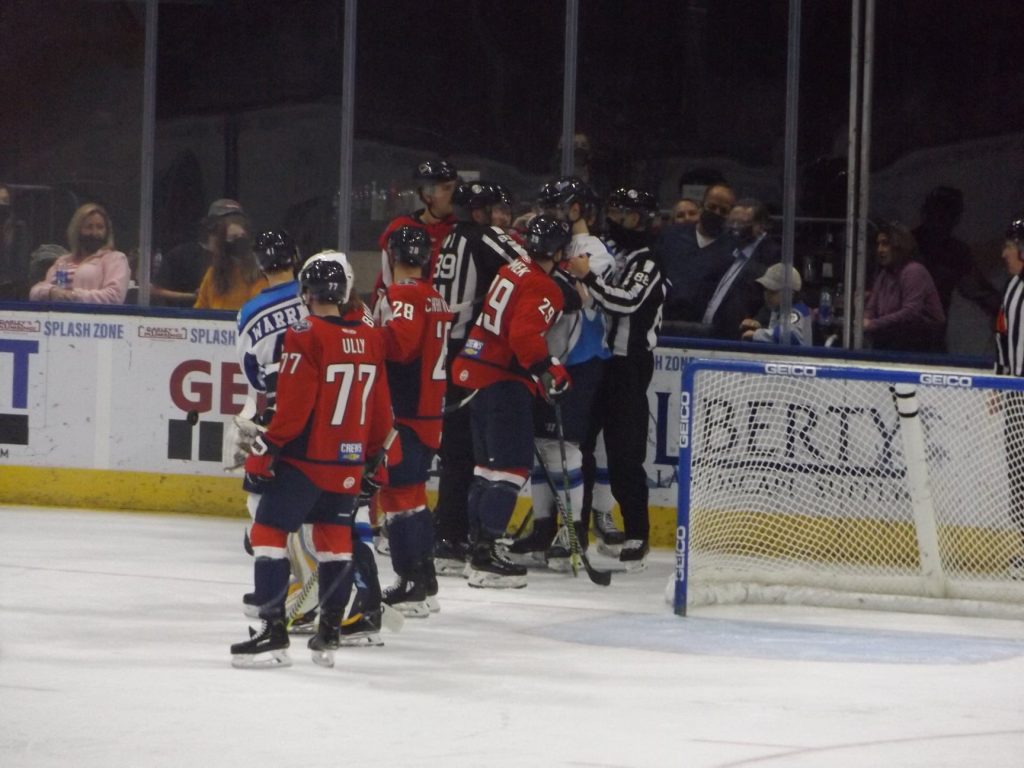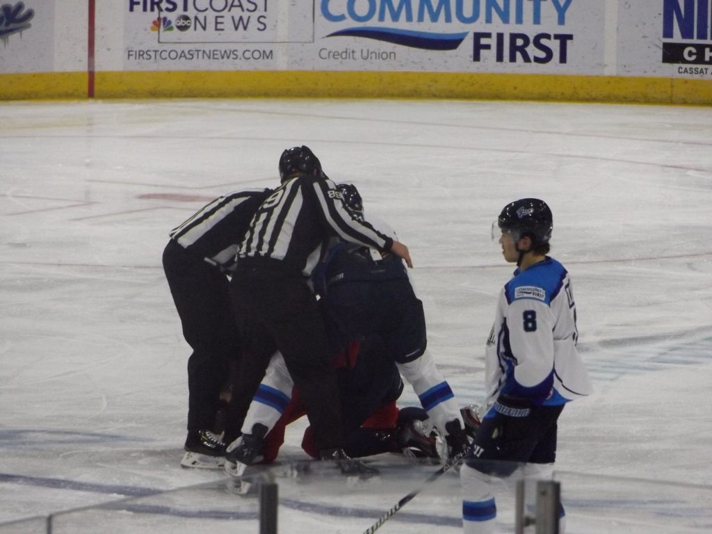 At the start of overtime, South Carolina’s Blake Hillman was called for interference, giving Jacksonville a four-on-three power play. It only took 23 seconds for Trevor Hamilton and Michael Kim to set up Saracino who netted his seventh of the season to win the contest.