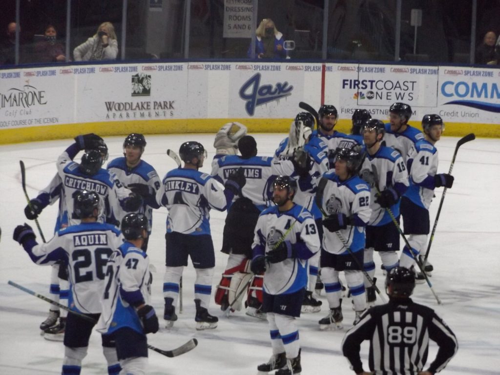 JACKSONVILLE, FLA – On Friday, February 19th, the Jacksonville Icemen celebrated one of their own, forward Nick Saracino, whose birthday fell the next day. The team decided to make it a party, creating a giveaway bobblehead to fans. Saracino paid the Icemen and their fans back by scoring the game-winning goal in overtime as Jacksonville downed the South Carolina Stingrays by a final of 3-2 in front of a COVID-restricted crowd of 3,422 at the Vystar Veterans Memorial Arena.