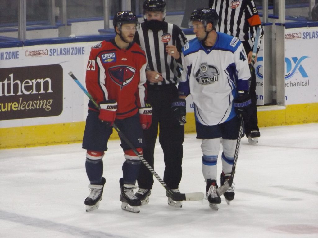 From the outset, the two netminders – Kyle Keyser for Jacksonville and Sean Bonar for South Carolina – controlled the contest. Neither one was in a giving mood in the first period as both pitched a shutout in the opening twenty minutes. Keyser turned away eight Stingrays shots while Bonar stopped nine opportunities by the Icemen.