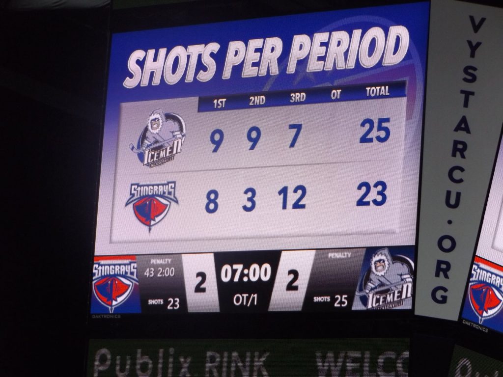 Midway through the third frame, South Carolina took advantage of a power play to regain the lead. Ully bagged his second goal of the game and eighth of the season with assists going to Dan DeSalvo and Zach Malatesta. It came on the Stingrays tenth shot of the stanza to just four by the Icemen at the time.