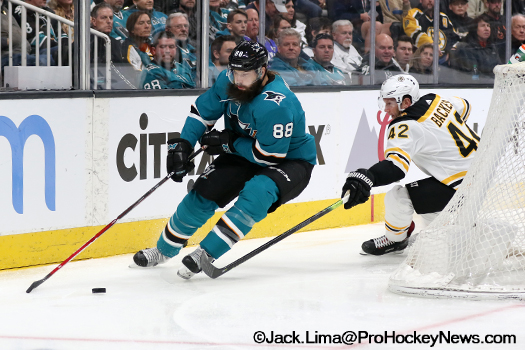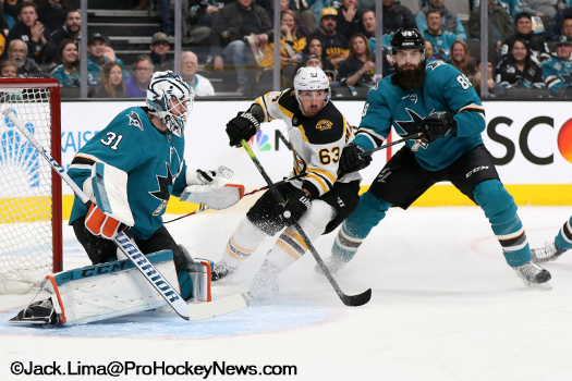 Thornton’s first goal came with only three seconds remaining in the first period. Joe Pavelski scored only 2:24 into the second period to close the gap to within a single goal, but Jake DeBrusk scored on a power play a few minutes later. Thornton struck again, followed by Logan Couture late in the period for the 4-4 equalizer unassisted.