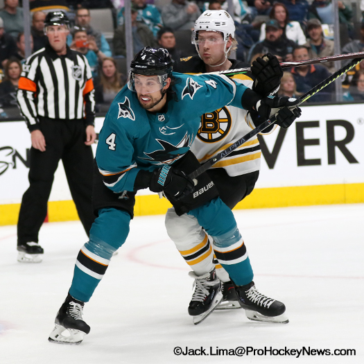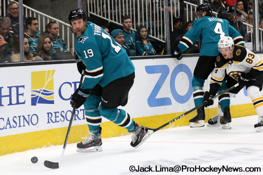 SAN JOSE, Calif. – The San Jose Sharks fell to the Boston Bruins in overtime, despite a hat-trick by Joe Thornton (the fifth of his career). The Sharks had to climb out of a 0-3 deficit created by the Bruins early in the first period. Bruins goals came off the sticks of Torey Krug, Zdeno Chara and Karson Kuhlman. Thornton scored a goal in each of the three periods.