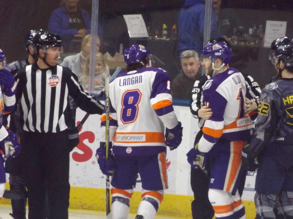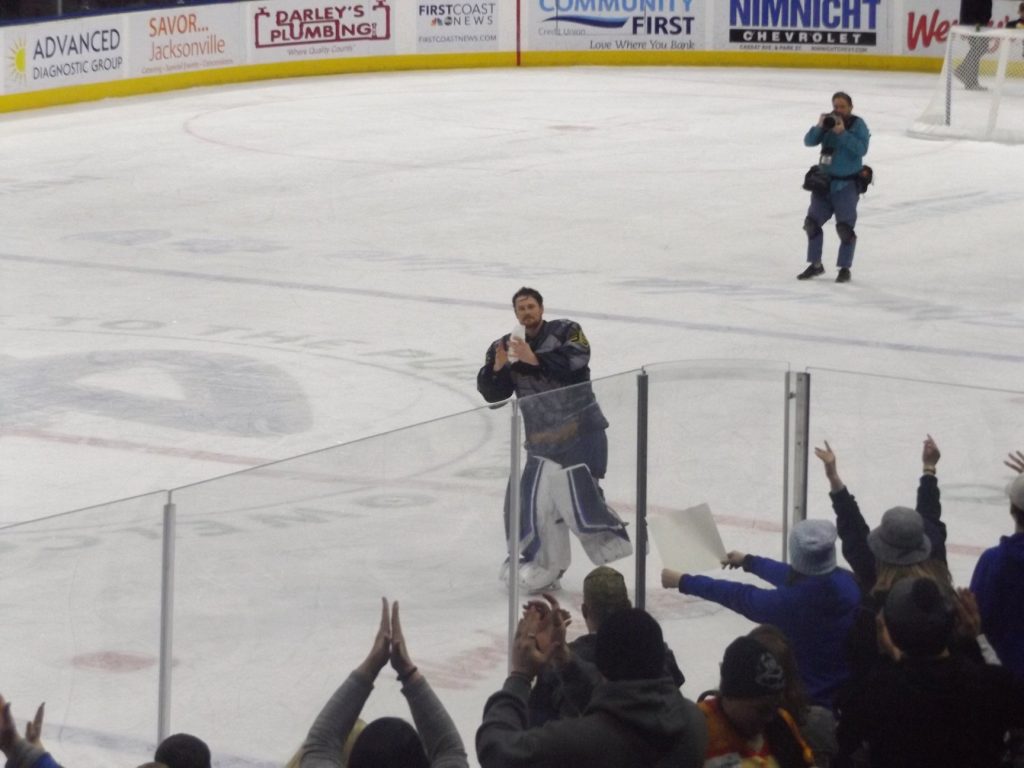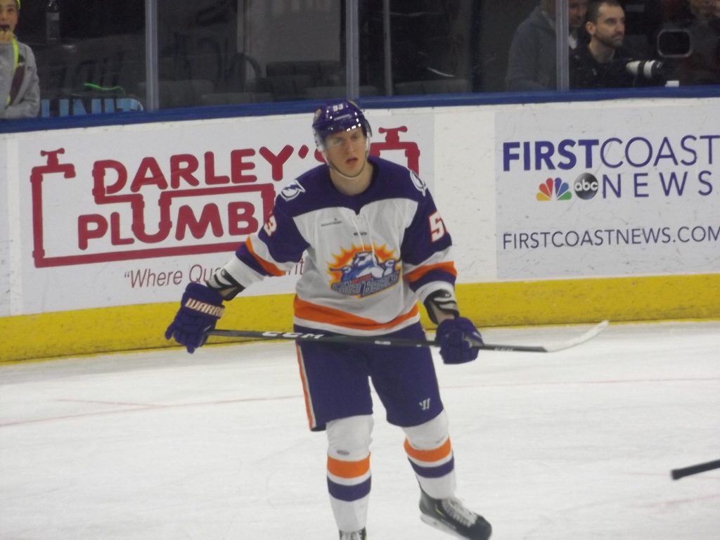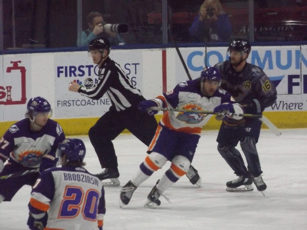 Bobby Lynch scored the fourth Icemen goal with five minutes remaining in the second period. Lynch caught a pass at the left wing circle and made a pivot move to attempt a turnaround shot opportunity. Lynch delivered a shot that clipped off Condon’s pad and then barley slid across the goal line for the goal to put Jacksonville In front 4-0 at the second break.