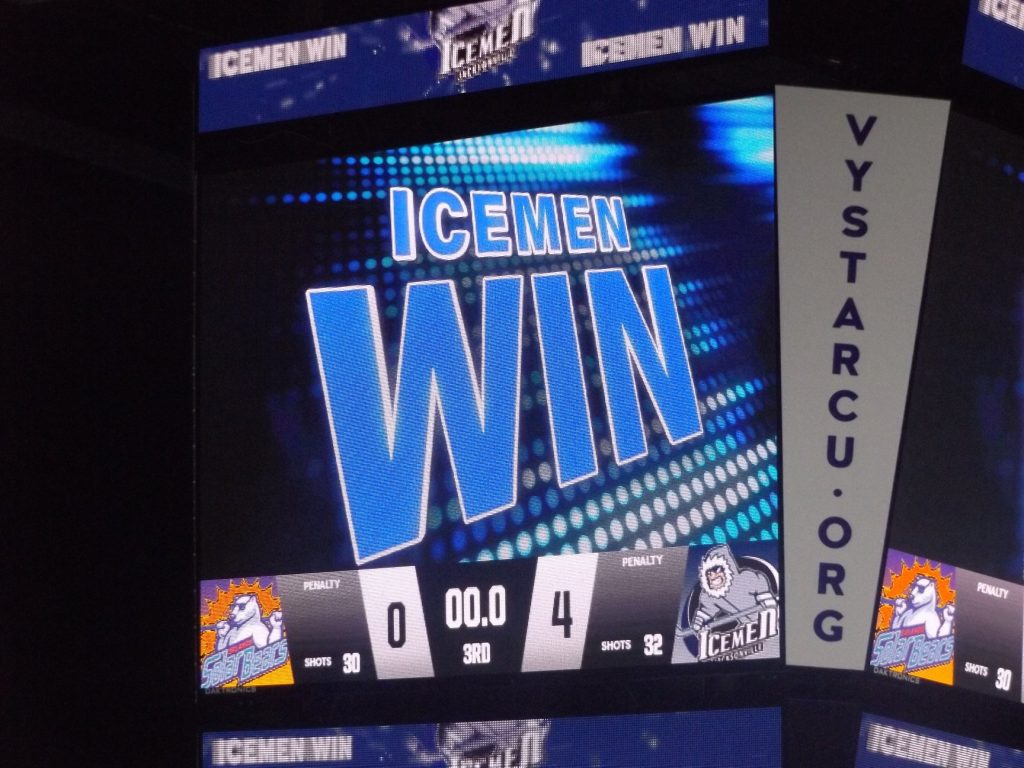 The Icemen took a stranglehold on the game in the second period to build a 4-0 edge. The first of the goals came at 3:45 of the period when Wacey Rabbit skated the puck from the corner to the crease. Rabbit’s first shot was stopped by Condon, but the rebound bounced back to Rabbit who lifted a second shot that hit off the crossbar. However, it would be third time is the charm for Rabbit who received a third chance to score as he shoved another rebound chance into to the net for the hard-fought tally.