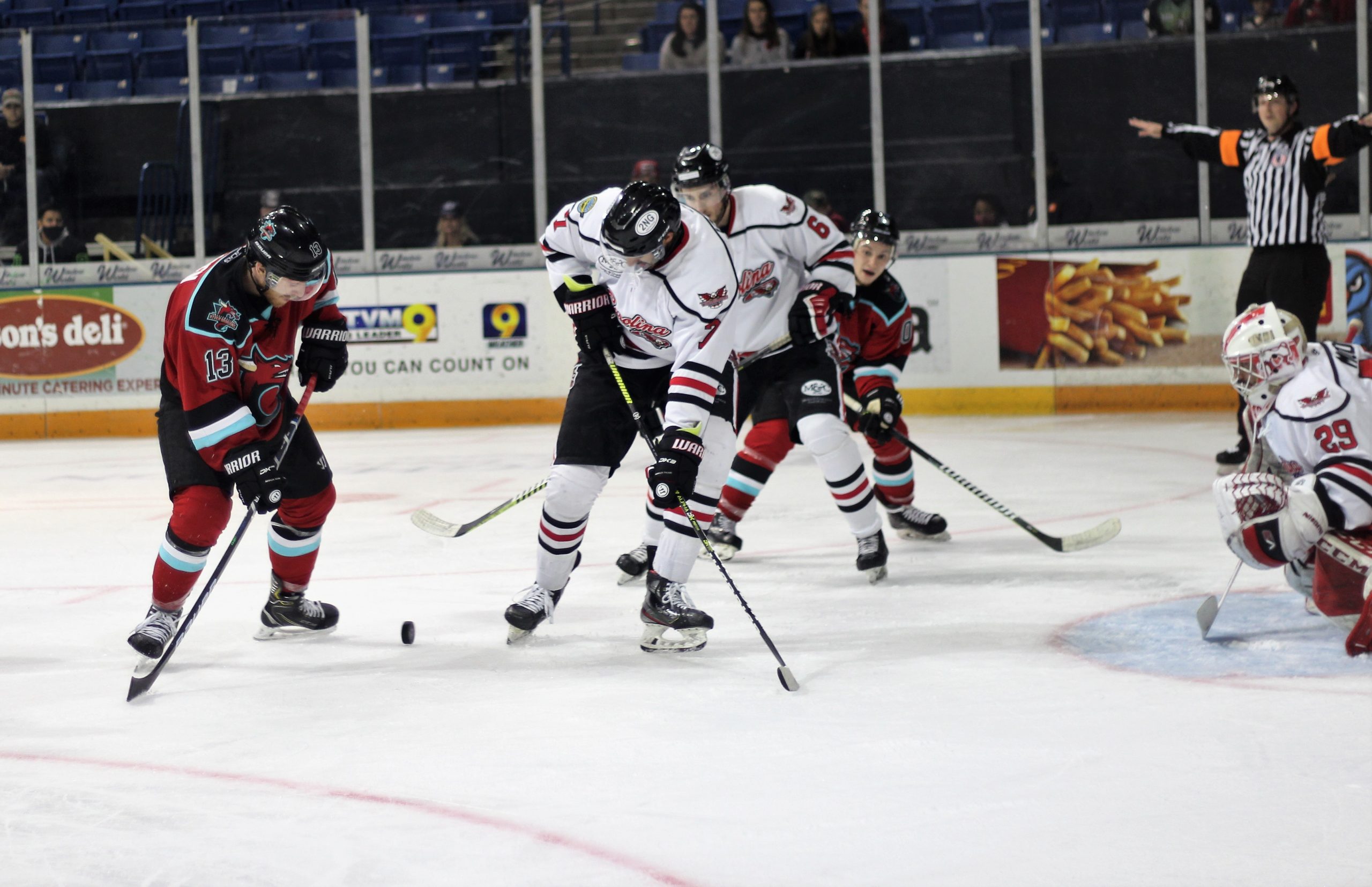 Nick Modica was on his game in this one stopping 31 of 33 shots for his 4th win of the season. Jacob Caffrey suffers his first regulation loss of the season making 22 saves on 29 Carolina shots.