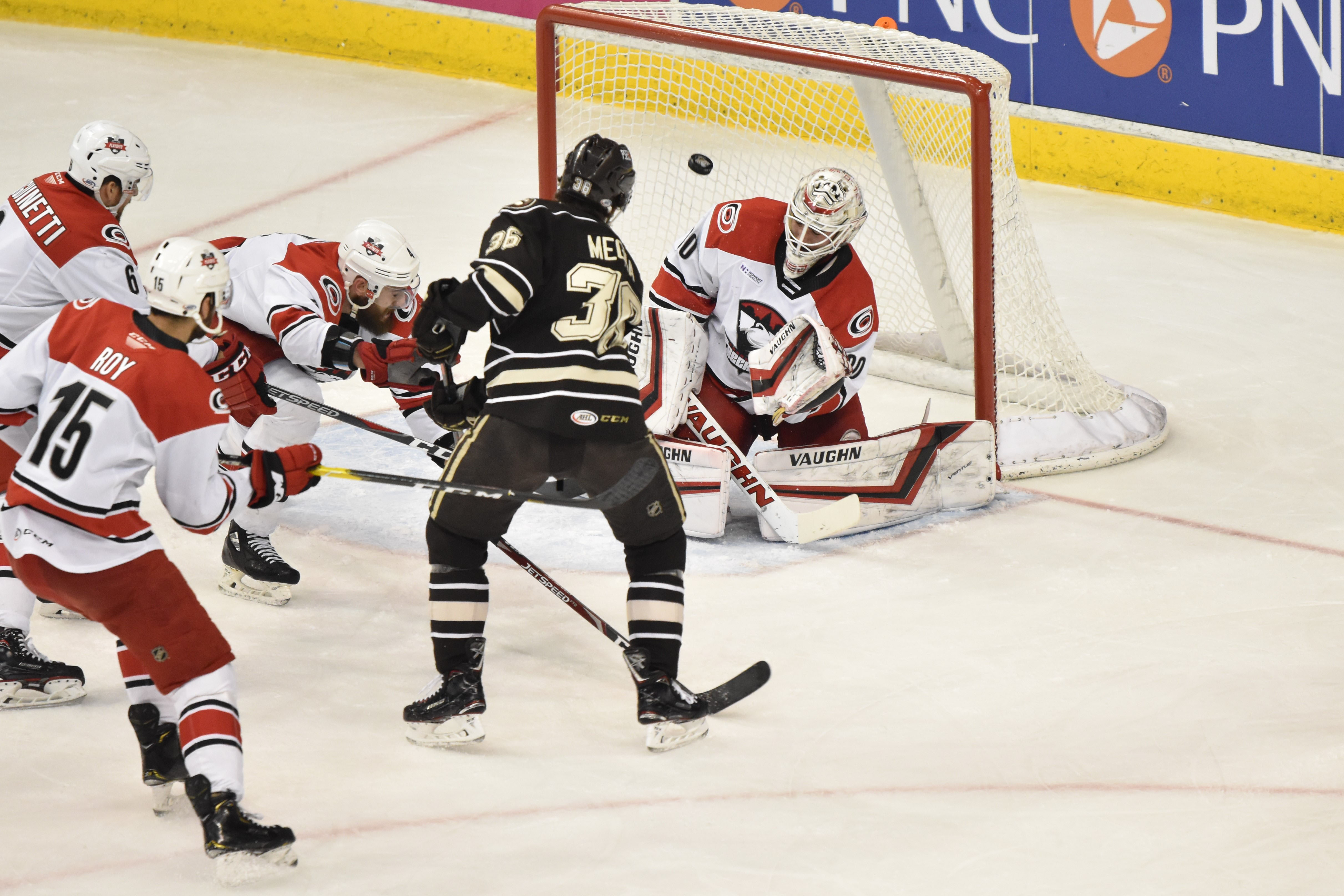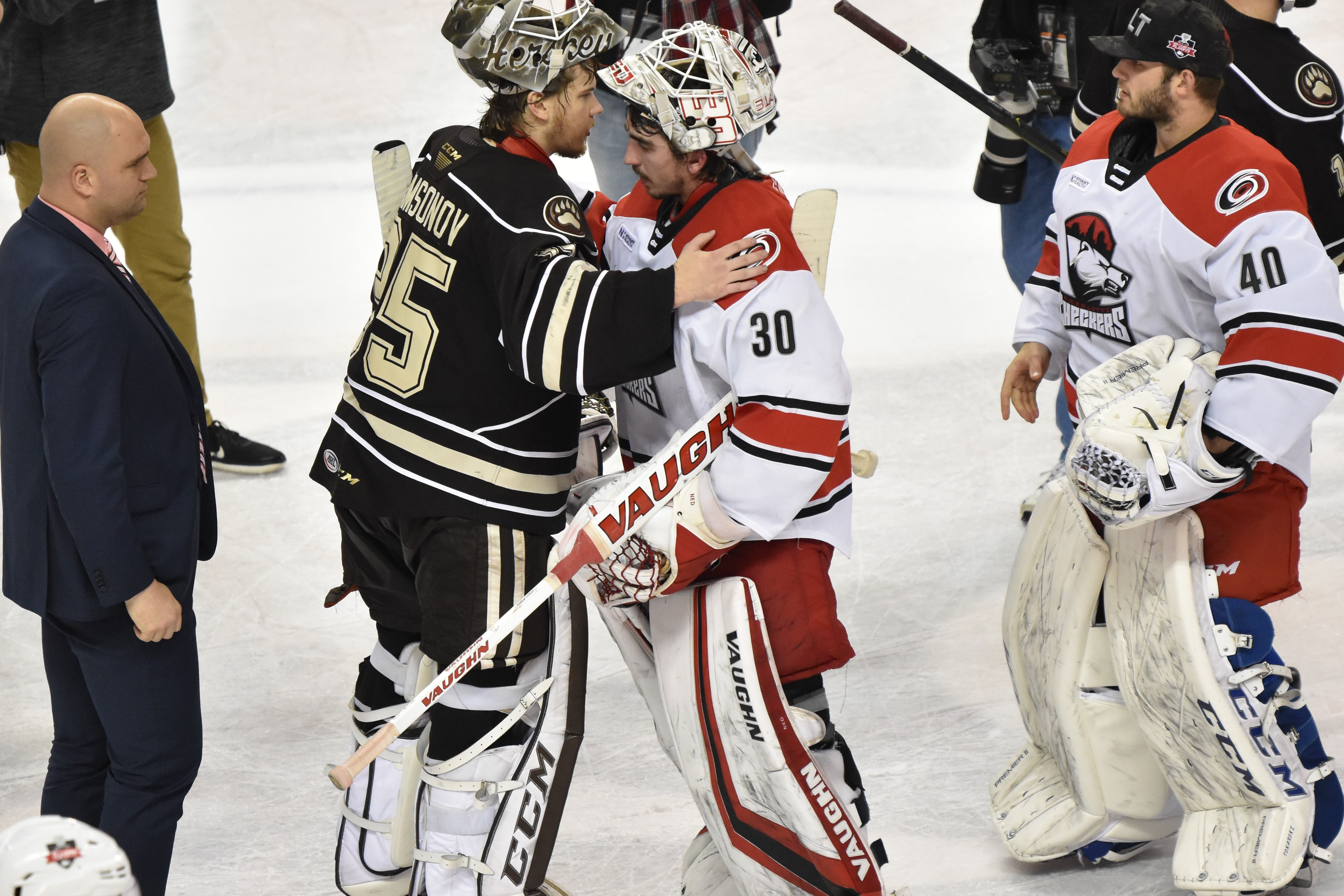 Aleksi Saarela recorded the first playoff hat trick in franchise history, Julien Gauthier notched a goal and an assist and the Checkers stifled the Bears for a fourth straight win. Charlotte held Hershey to a total of seven goals and an average of 22.3 shots on goal per game in the series.