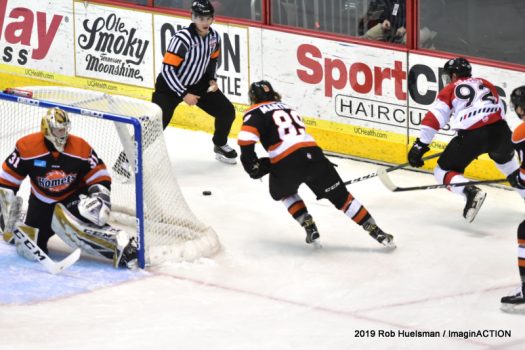 The momentum was short-lived, however, as with under two minutes to play, forward Phelix Martineau scored on the power play to restore the two-goal Komet lead, 3-1, after 40 minutes.