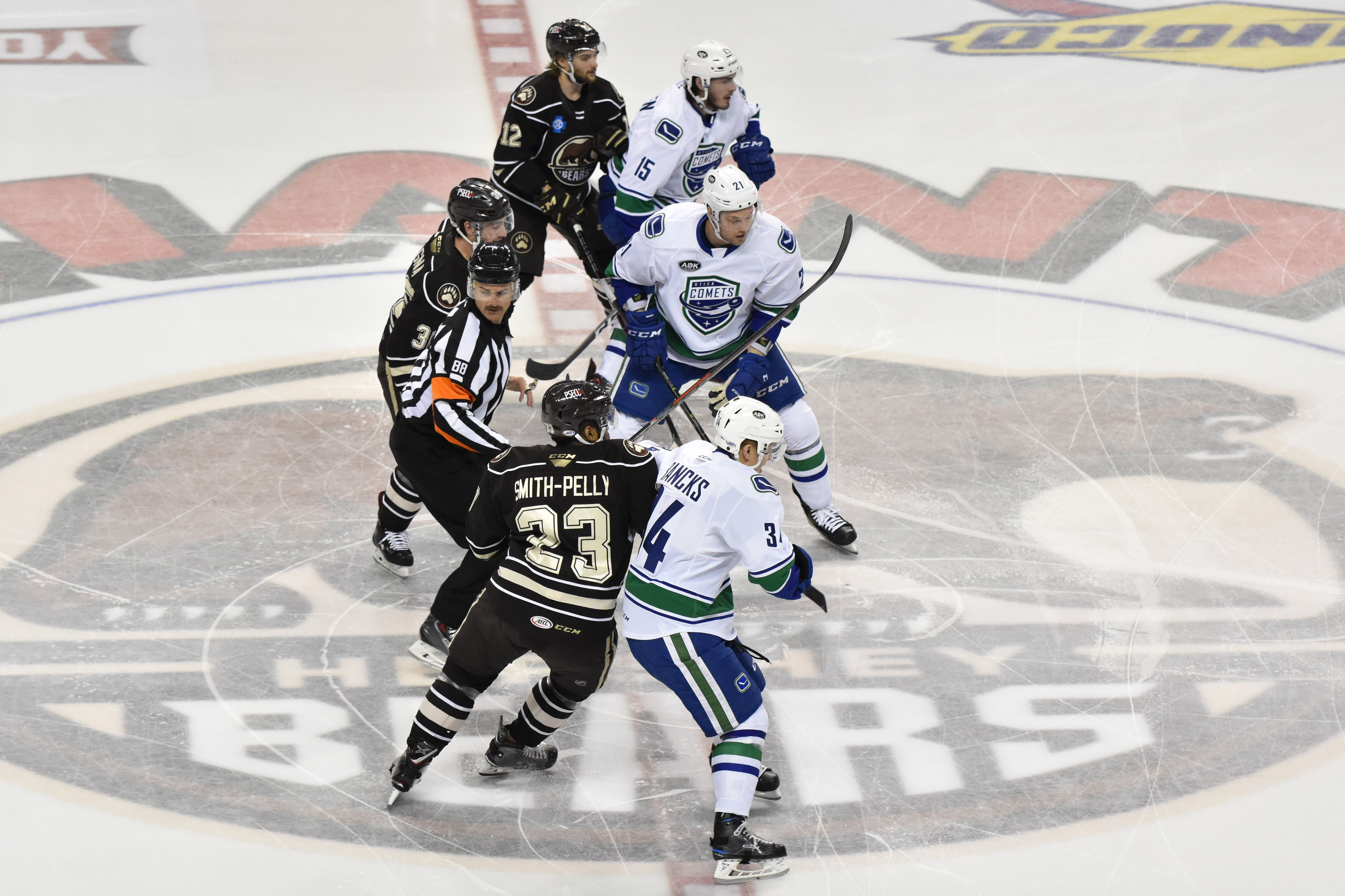 The Comets needed little time in the second to draw even, as Kole Lind earned his second goal in two games. Lind waited patiently at the left circle before firing the puck into an open window past Vitek Vanecek. Less than two minutes later, the Bears re-upped their one-goal lead on a power play strike from Jayson Megna.
