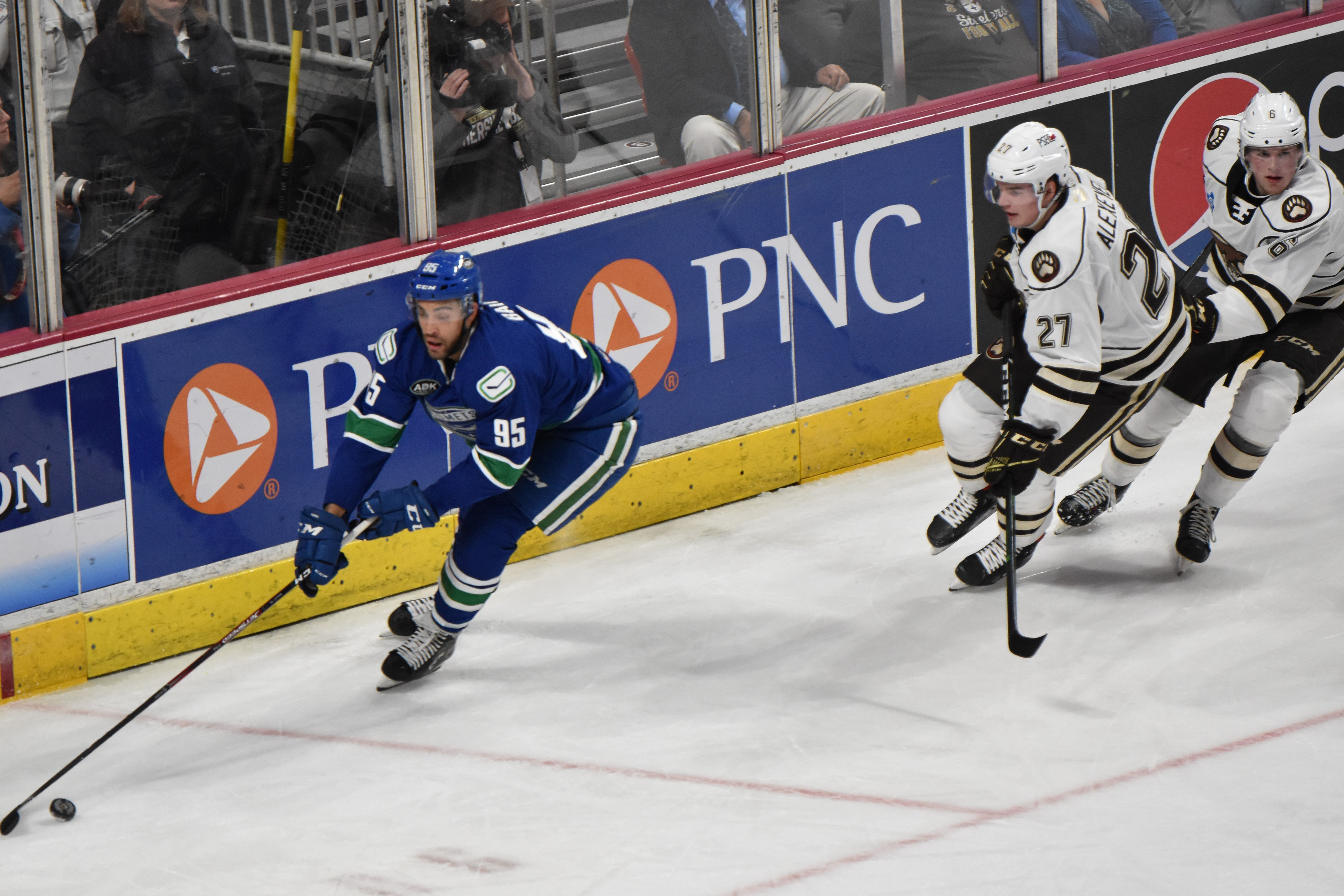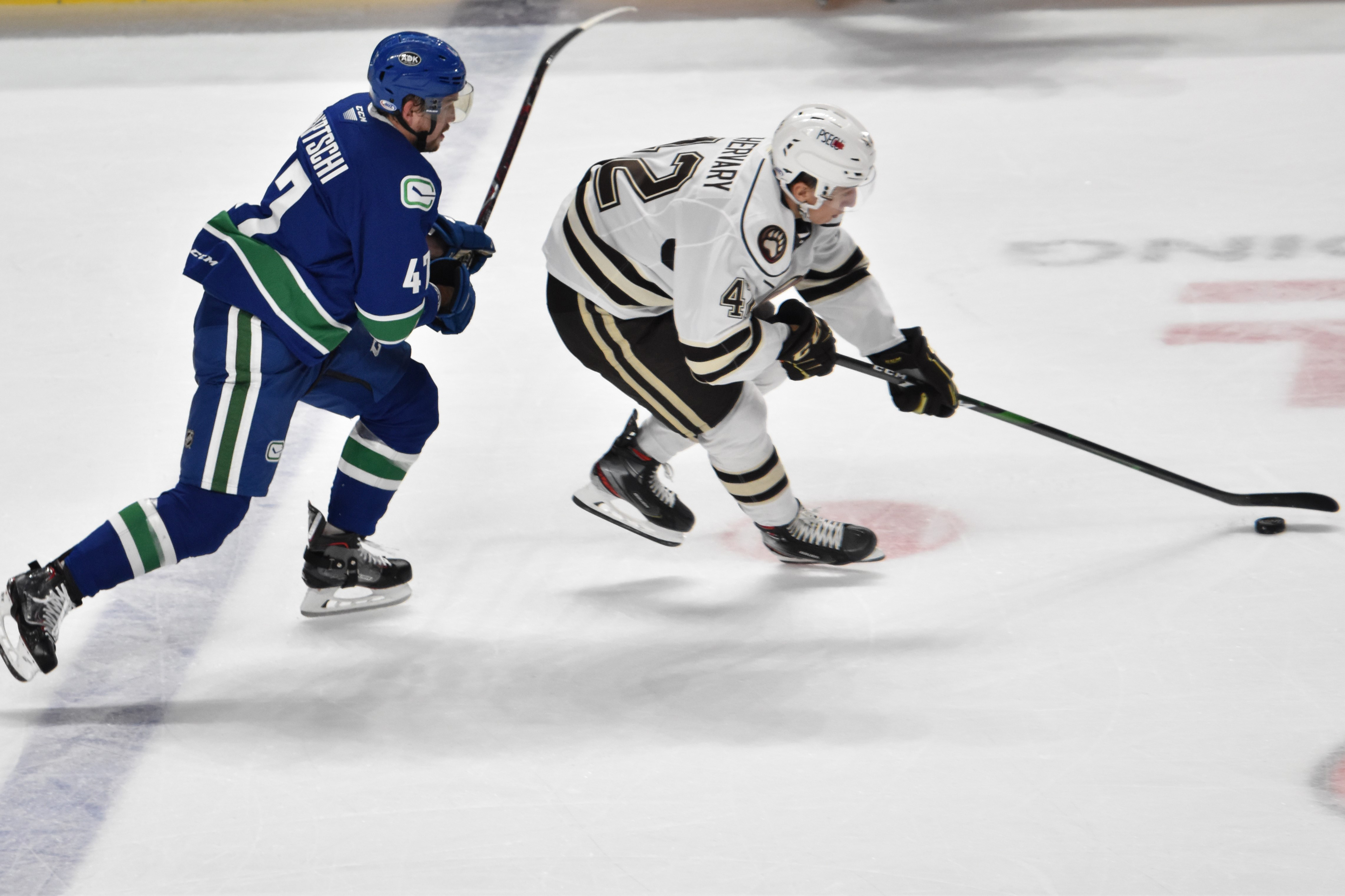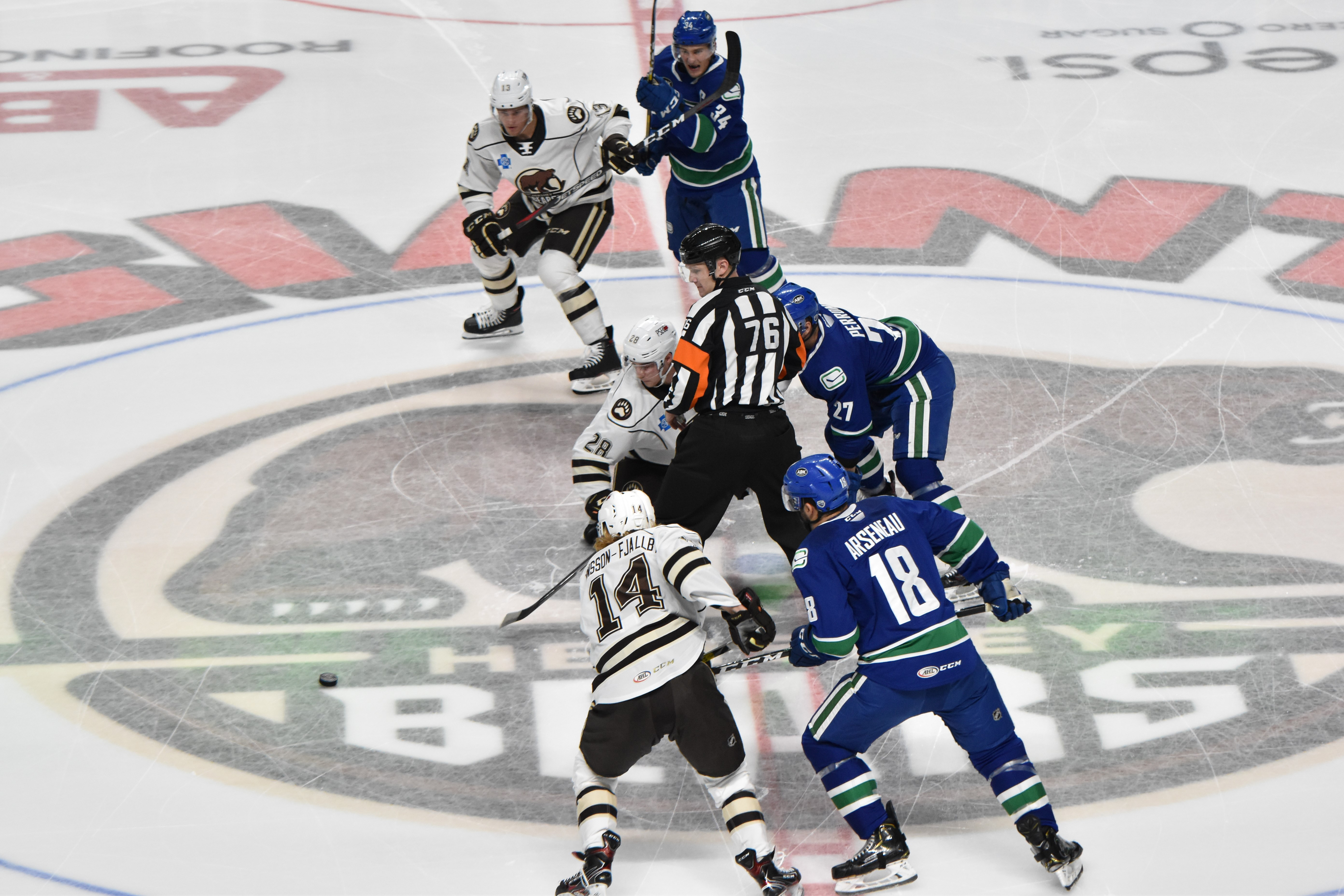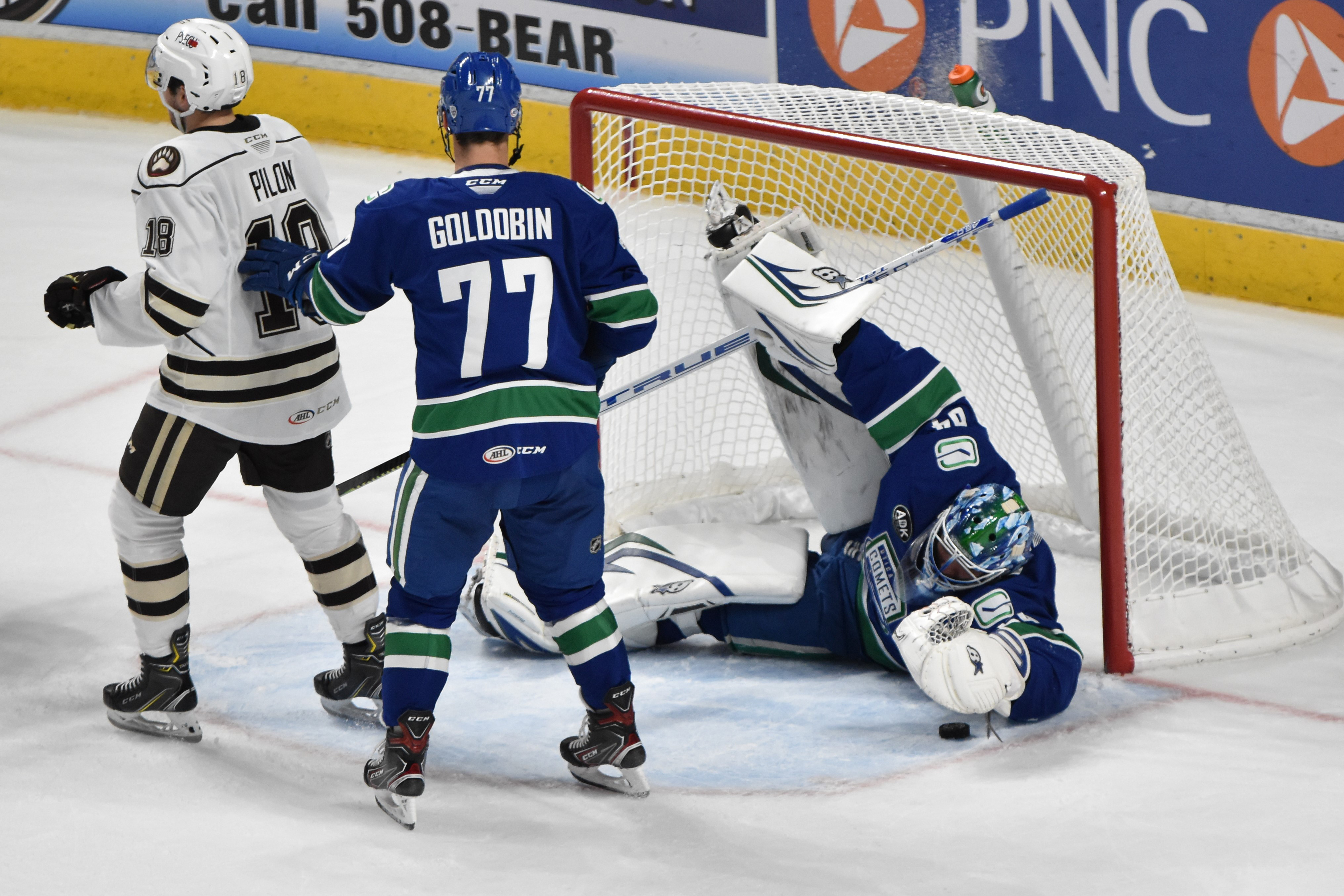 Creating multiple chances in the first period, the Comets were rewarded midway through the opening frame. Sven Baertschi hurried the puck up the ice along the right wing side before firing a rink-wide feed onto the tape of Adam Gaudette. After reeling the pass in, Gaudette carried into the Hershey zone and lasered a wrist shot from the left dot into the short-side corner of the net. Gaudette’s first of the year was the only goal of the period and sent the Comets into the break with a 1-0 lead.