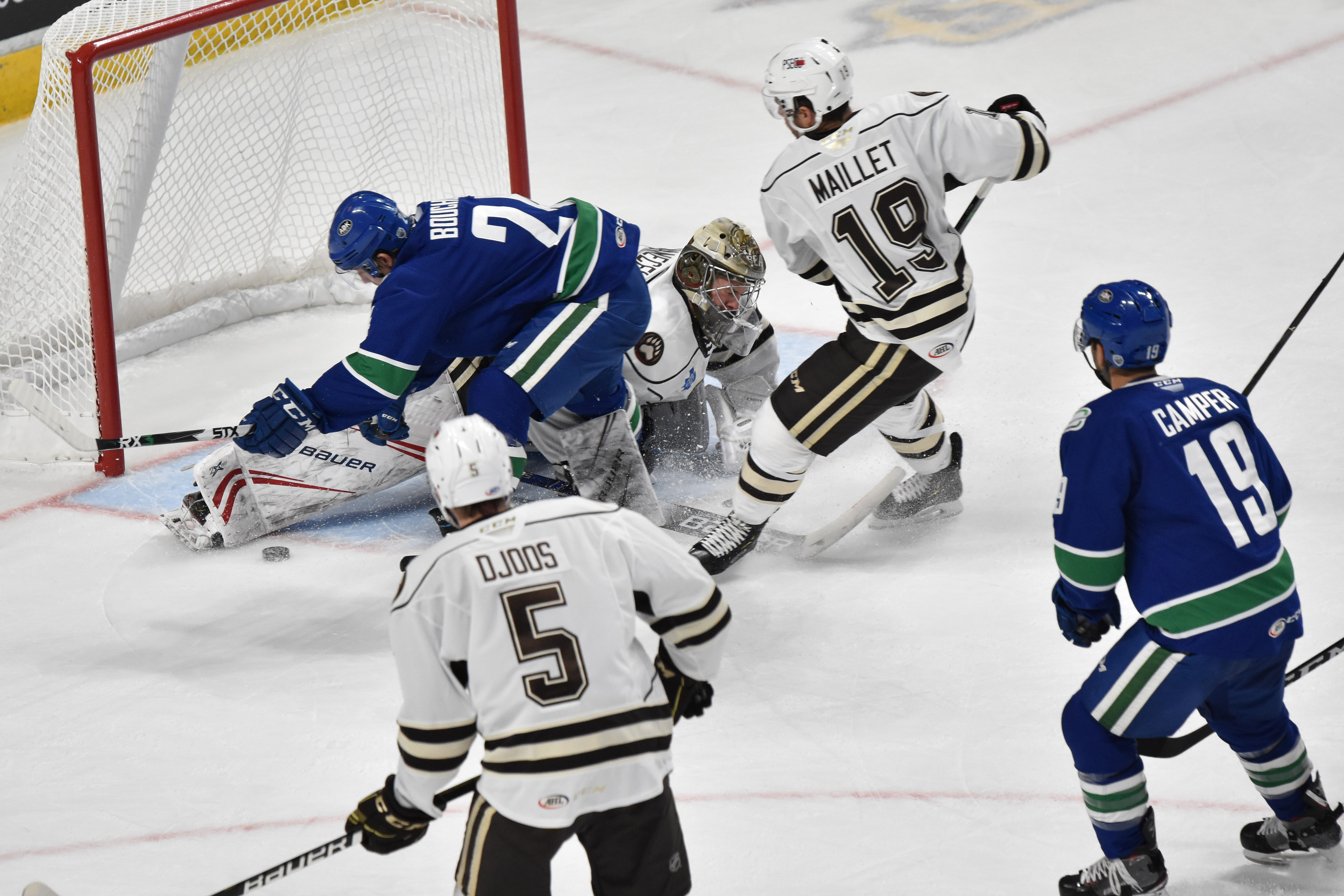 Early in the third period, Hershey tied the contest at a goal apiece after Philippe Maillet snuck behind the Comets’ defense and scored on a wrist shot from the right-side circle. DiPietro stood on his head the rest of the way and the game eventually went to overtime tied at one.