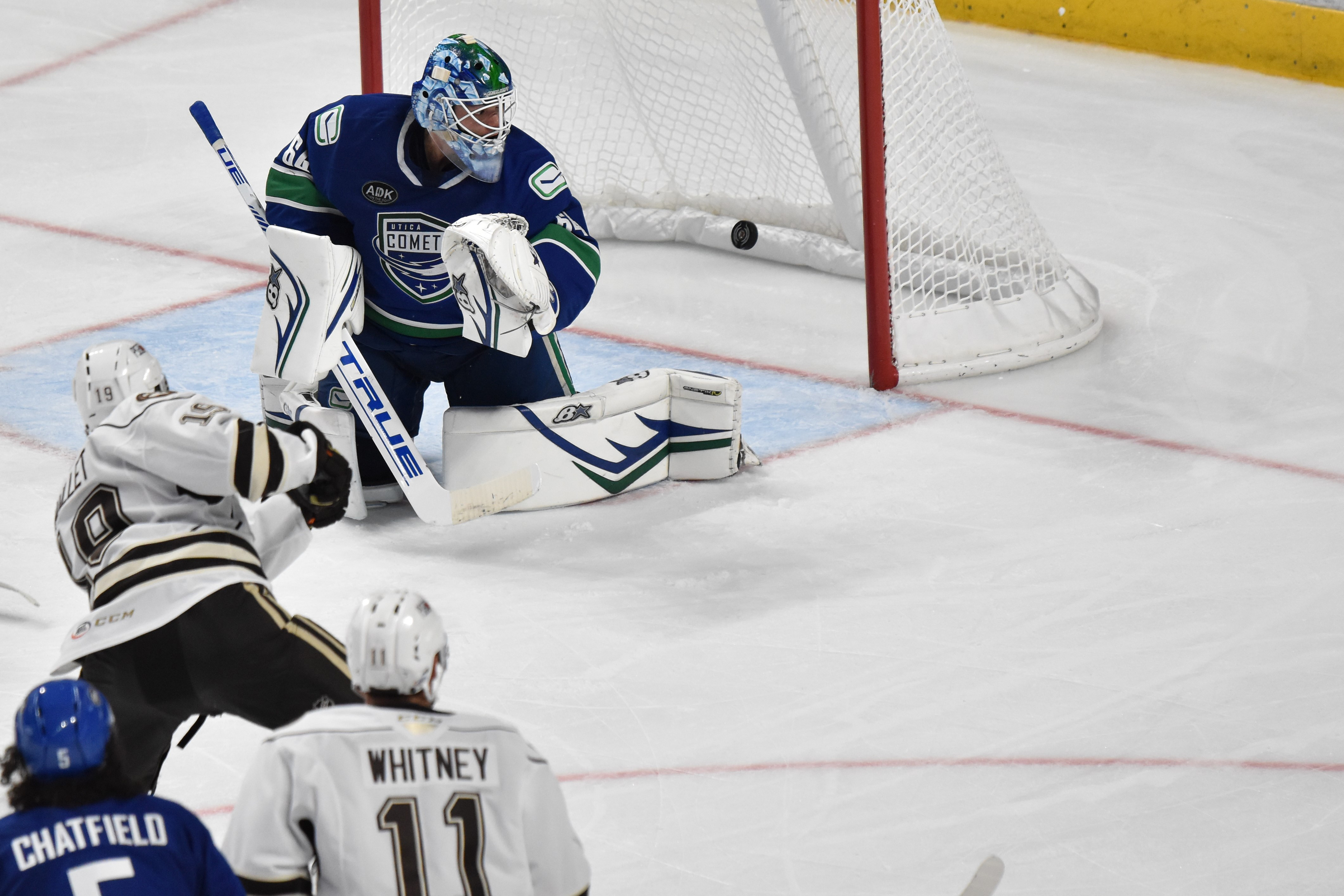 Neither team could score in the overtime period, setting the tone for Utica’s first shootout of the year. DiPietro made saves in all three rounds, creating a chance for Reid Boucher to end it in the bottom of the third. Boucher weaved his way in and flung a wrist shot over the leg of Vitek Vanecek for the win.