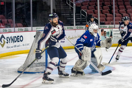 In the third, Denomie added his second of the contest at 7:39. Doremus found him near the net and he tipped home his third of the season on the power play to make it 3-2. Wichita pulled Buitenhuis and called a timeout with a minute left in the game. Crinella came through the right circle off the faceoff and beat Mannella as he was falling down to tie it at three.