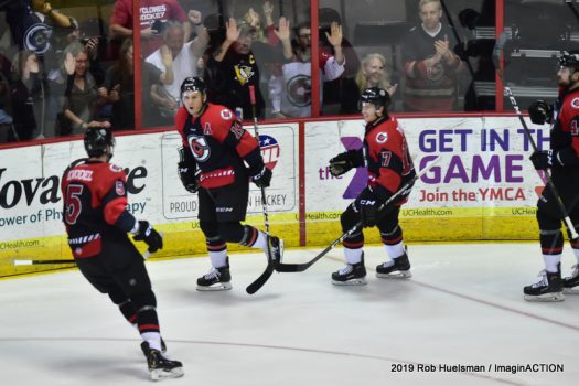 Cincinnati wastes little time finding the back of the net, as just 1:15 in Schultz came down the right side and sniped a shot in from the circle on the power play to put the Cyclones on top, 1-0.
