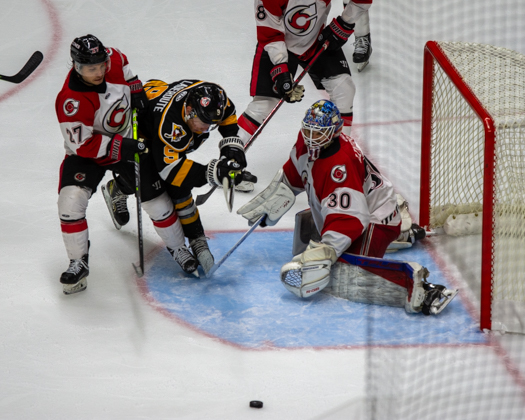 Saturday night saw the Cyclones raise their 2022-2023 Central Division Championship banner prior to puck drop against the division rival Nailers. Wheeling captured the lead less than three minutes into the game with a goal from David Jankowski on the powerplay. Cyclones rookie forward Adam Berg electrified the Cincinnati crowd minutes later, cleaning-up a rebound off a James Hardie shot. Cédric Desruisseaux broke the tie later in the first period to give Wheeling a 2-1 lead heading into the first intermission.