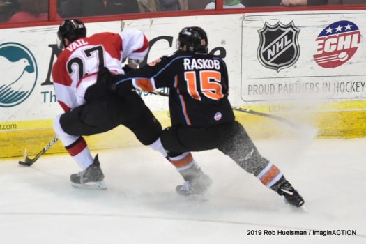 Cincinnati jumped out to an early 1-0 lead 6:27 into the opening period when Atwal sent a pass to Aquin and he fired in a shot from the slot for his 26th tally of the season. Cincinnati tacked on another exactly two minutes later when Powell came down the left side and sent a rink-wide feed to Schultz in the right circle, and he scored to give the ‘Clones a 2-0 lead after 20 minutes.