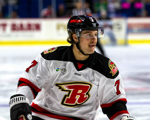 Gage Torrel made it a 3-1 game with the first goal of his career, a power play tally just 2:54 into the period, assisted by Tyler Coulter and Trey Phillips. Ian McNulty cut the Rush lead to one, tapping home a back-door rebound for his second goal of the season. Roughly 10 minutes later, Brennan Saulnier made it 4-2 with his team’s second power play goal of the game at the 16:13 mark of the second period.