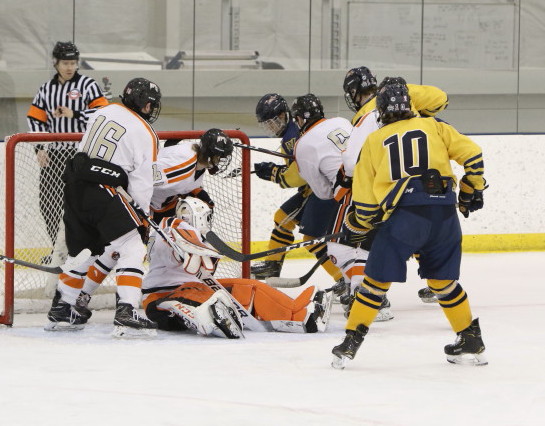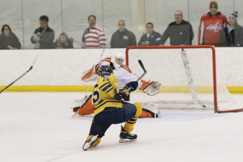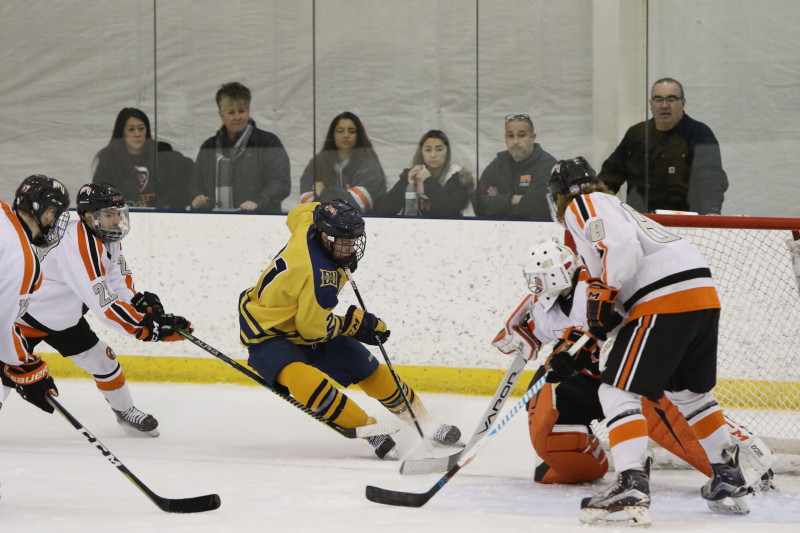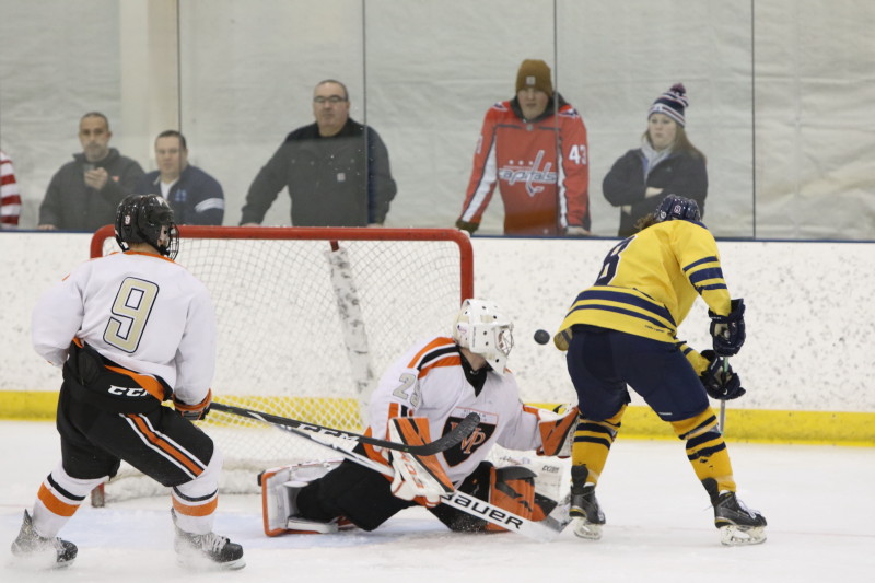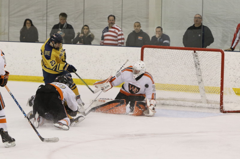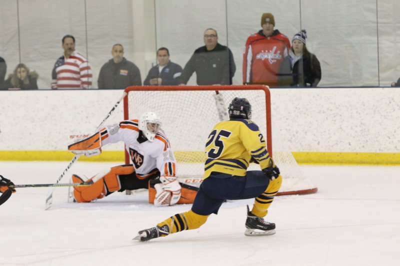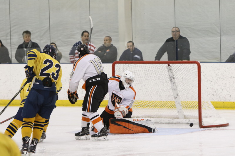 The first period sarted off with more penalties than goals, with a total of seven between the two teams. It wasn’t until just 14.5 seconds remained, that William Paterson’s Nicholas Brown got the Pioneer’s on the board, with a power play goal. Andy Deangelis and Braden Ploehn got the assists on the Brown goal.