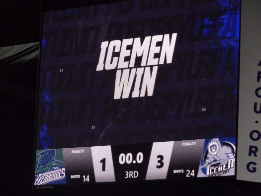 The third period saw Florida stave off a crucial power-play opportunity that ended at the 14:04 mark, but Jacksonville went on another man-up advantage exactly one minute later. With just six seconds to go in in that power play, as Craig Martin put the Icemen on top 3-1 at 3:01 of the final frame.