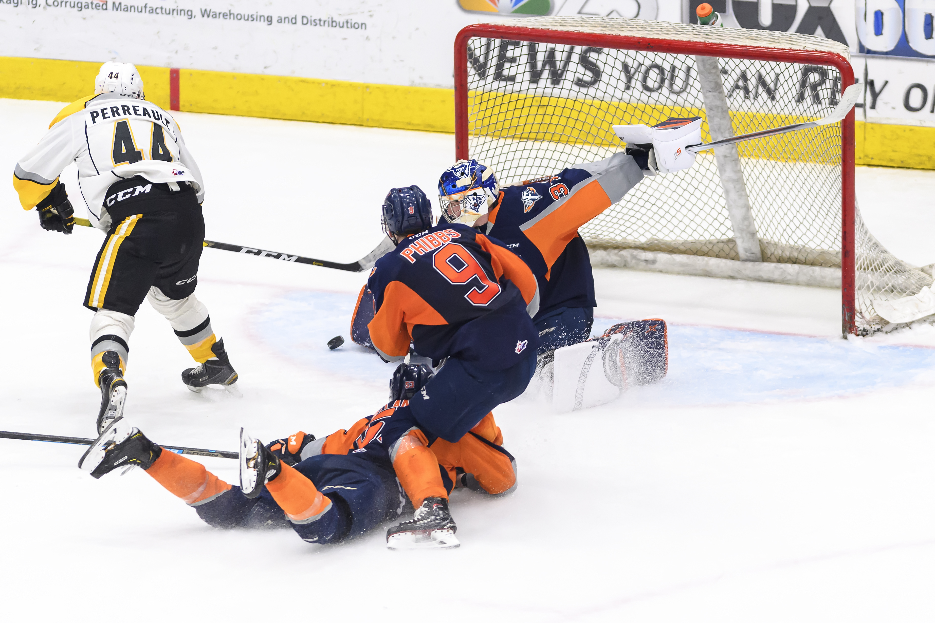 Cody Morgan logged his 12th of the campaign with the man-advantage at 18:18. Wismer made the set-up pass through traffic to Morgan in the slot for a quick-release one-timer. Michael Bianconi was credited with the second assist. Then, Harris scored his eighth of the season with under a minute two play in the middle frame. He received a pass in the left corner and lifted a wide-angle shot that snuck behind Lamour and in at 19:06, assisted by Vierling and Holmes.