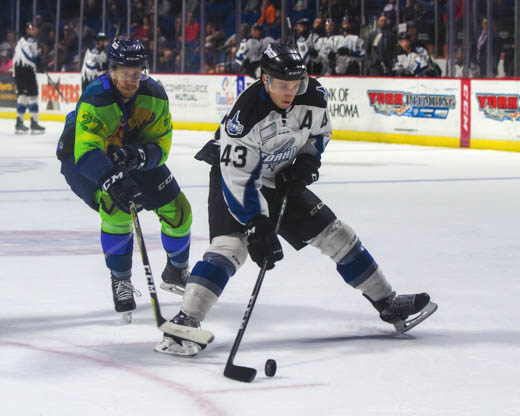 TULSA, OK – A bad bounce off of the corner boards led to a late go-ahead goal as the Idaho Steelheads (20-10-3) knocked off the Tulsa Oilers (17-12-6) 4-2 Saturday at the BOK Center.