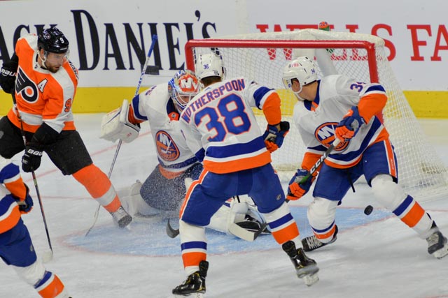 Cory Schneider started for the Isles and made 10 saves on 11 shots. Kenneth Appleby made 15 saves through the back half of the game.