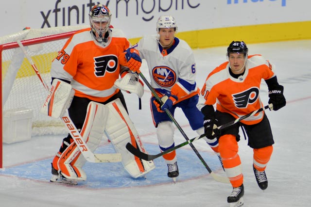 Carter Hart gave up one goal on 18 shots through 40 minutes of play. Samuel Ersson made nine saves.