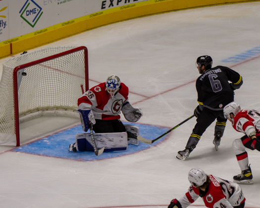 The Cincinnati Bengals defensive line was in attendance to sound the new siren and it seemed to pump up the Cyclones for the third period, as the Cyclones would score four unanswered goals in the period. Matt Berry would tie it 2-2 at the 6:02 mark of the third. The former Toledo Walleye has two goals on the season. Sean Allen and Kohen Olischefski picked up the assists. Just over two minutes later, Arvin Atwal would score his first goal of the season. Less than 10-seconds later, Louie Caporusso scored to put the Cyclones up 4-2.