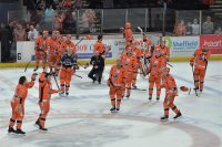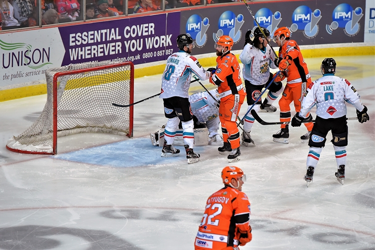 On an early man-advantage, the Steelers made no mistake taking the lead – Ben Lake blocked the initial shot buy Marek Trončinský was on hand to put in the loose puck at 2:13 for the game’s opening goal. Jordan Smotherman levelled on a Giants’ powerplay with a shot from the blueline that went through a screen, but Tanner Eberle gave Sheffield the lead back at 15:15 on a powerplay for the Steelers.