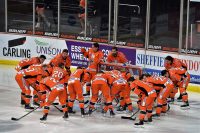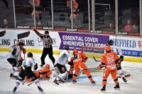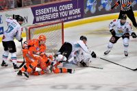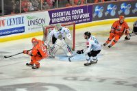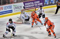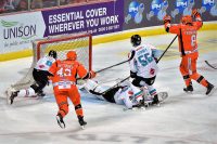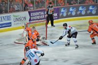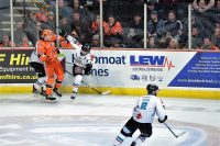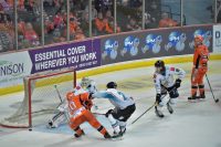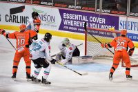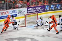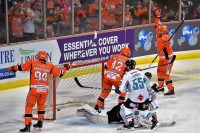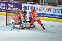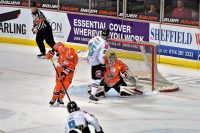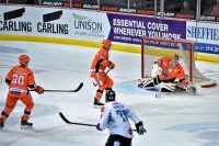 On an early man-advantage, the Steelers made no mistake taking the lead – Ben Lake blocked the initial shot buy Marek Trončinský was on hand to put in the loose puck at 2:13 for the game’s opening goal. Jordan Smotherman levelled on a Giants’ powerplay with a shot from the blueline that went through a screen, but Tanner Eberle gave Sheffield the lead back at 15:15 on a powerplay for the Steelers.