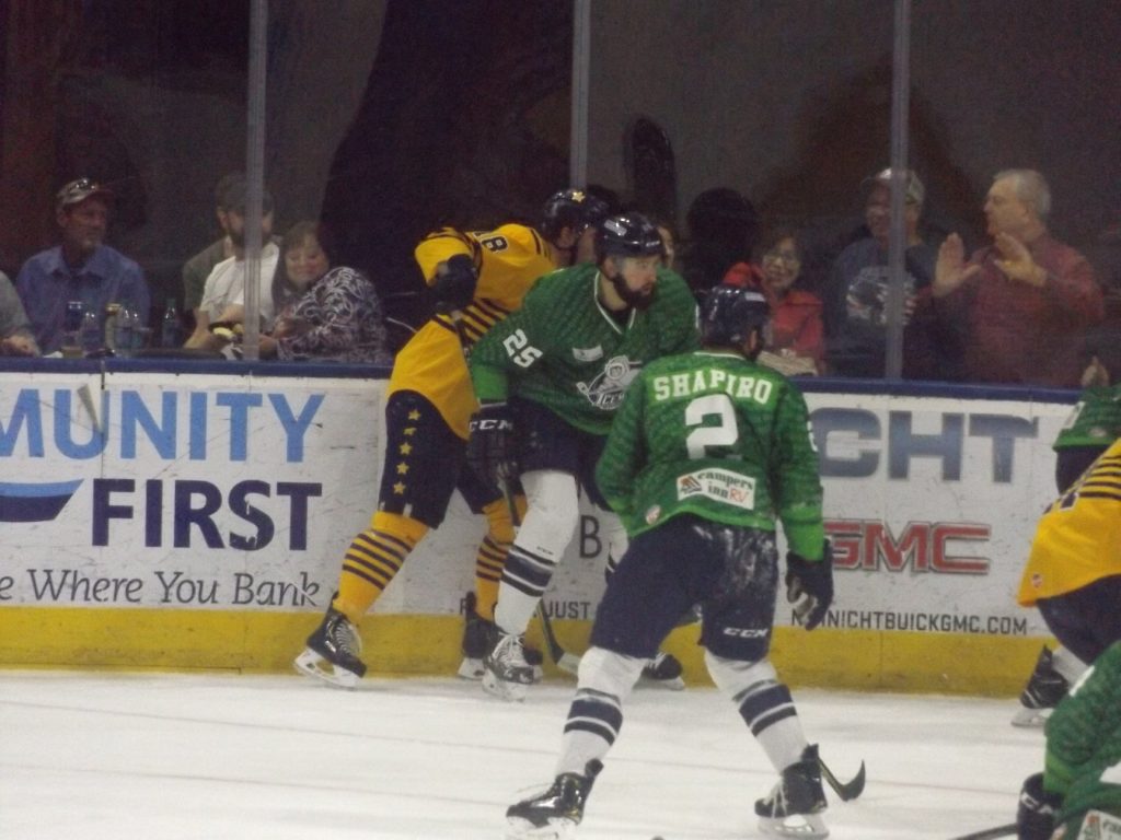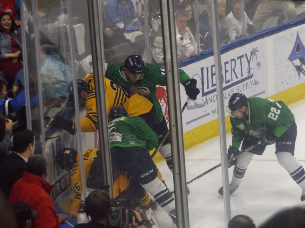 Jacksonville got on the board in the closing minutes of the middle frame on a goal from Christophe Lalancette. Fowlie stole the puck from an Admirals player in the Jacksonville end. Fowlie played the puck across the ice to Wacey Rabbit which sprung Jacksonville in on a two-on-one into the Norfolk zone. Rabbit fed a pass from the right circle into the left circle for Lalancette who was able to shoot the puck just over the glove of Jeremy Brodeur to pull the Icemen within one at the second break.