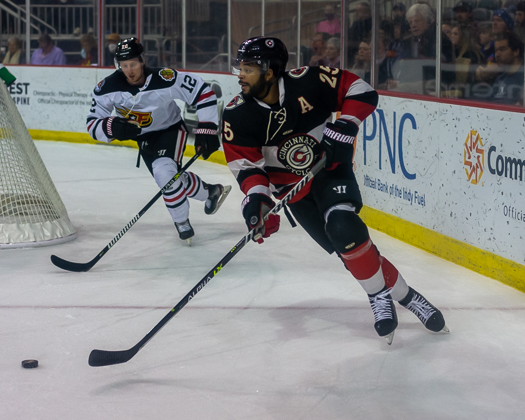 Starting the period on the penalty kill, the Fuel would kill off a 1:10 5-on-3 Cincinnati advantage. Scoring their first goal of the game, Jared Thomas batted a loose puck in front of Angus Redmond out of the air and cut the Cyclones’ lead to two goals.
