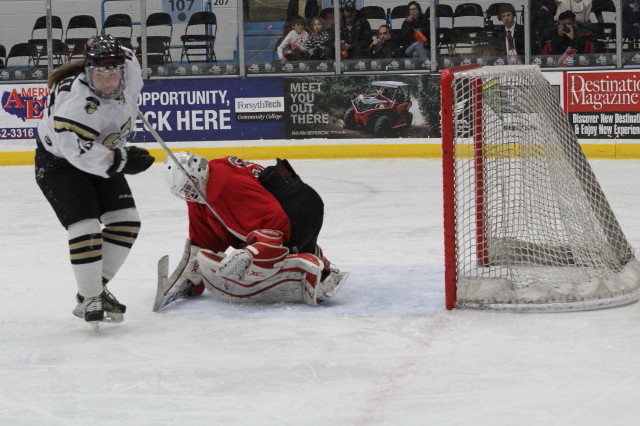 The third period started off with N C State’s Emily Petersen potting her second goal of the game with the assist coming from Robin Petersen. With forty six seconds remaining, Alyse Borelli would finish the scoring for the game.