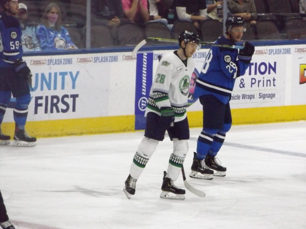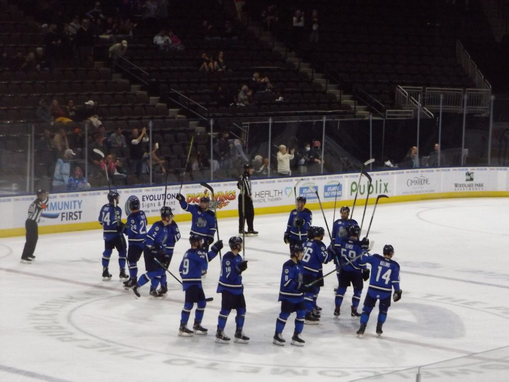 The Icemen would catch a break eventually when Florida’s Alex Kile was whistled for unsportsmanlike conduct, and the Icemen’s powerplay unit went to work. Trevor Hamilton fired a point shot that was saved by Florida’s Cooley, but the rebound popped right out to Girduckis at the left side circle who roofed it for his second goal of the night. Girduckis was not done yet though. After a great individual effort by Rabbit to retrieve the puck on his own dump-in, he found Girduckis cruising into the slot who squeaked the puck past Cooley to secure the hat-trick and the win for the Icemen.