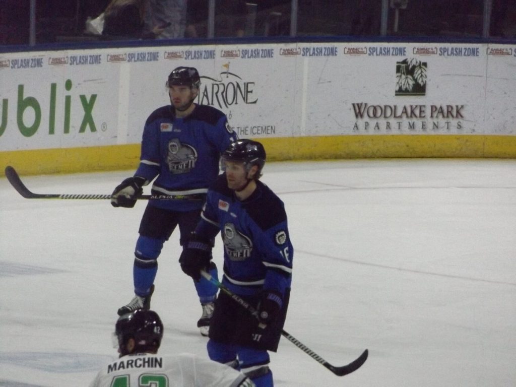 The second period started with penalties both ways, but both teams’ penalty kill units came out strong. Williams and Cooley both made some timely saves to keep their teams in it, but there was only so much the Florida goalie could do when the Icemen found themselves with a 3-on-2 rush just as a Jacksonville penalty was expiring. Carrying the puck down the left-wing boards, Wacey Rabbit fed it to the trailer, Jason Binkley, in the middle, who found Girduckis cutting in from the right. Girduckis’ first shot was stopped, but Cooley stood no chance on the rebound as Girduckis put it home for his 4th of the season, giving the Icemen a 2-0 lead.