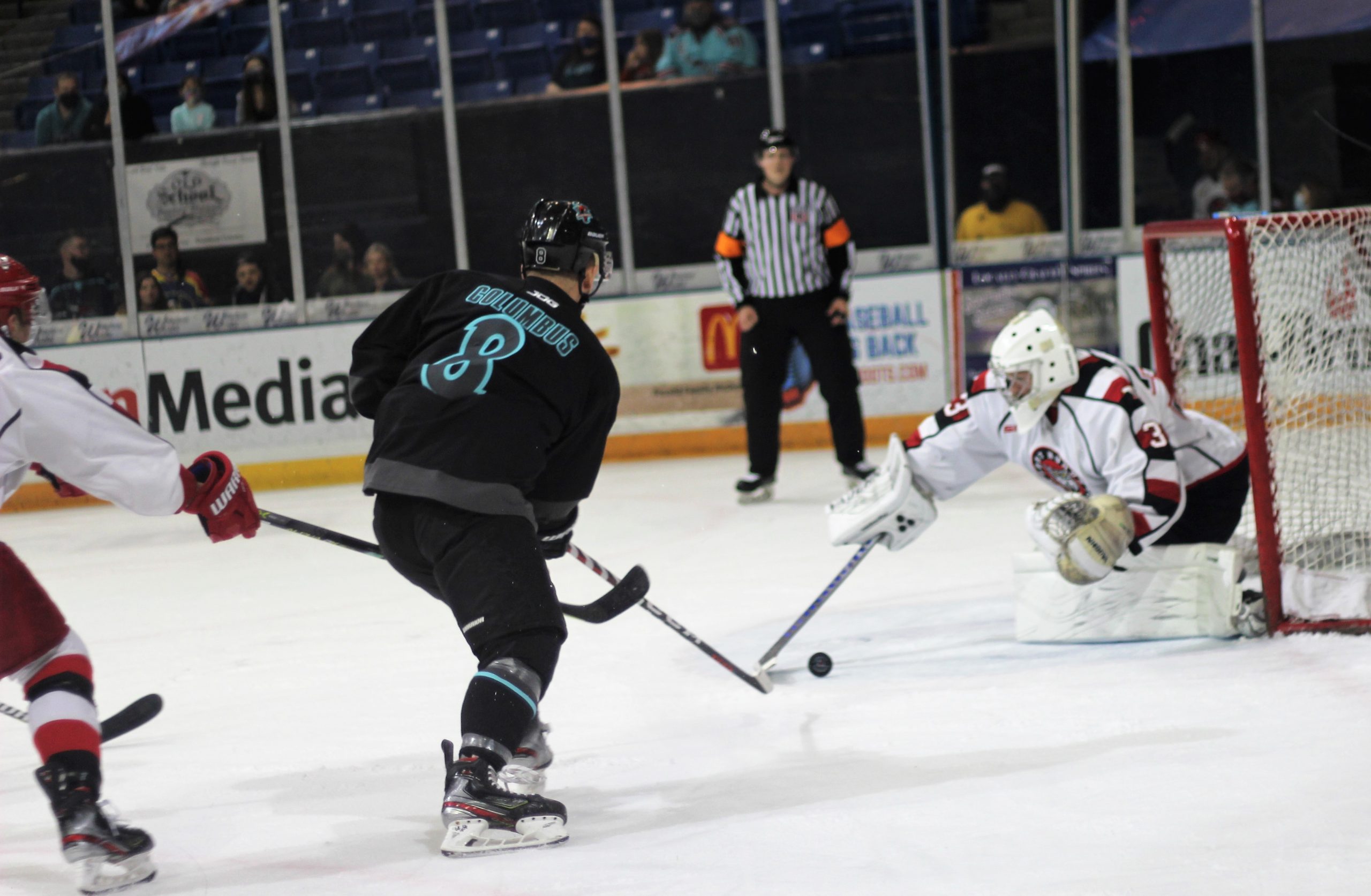 Port Huron’s Dalton Jay made it 3-1 with a shorthanded goal 5:22 into the period, sniping the top-left corner on Jacob Caffrey. Columbus was unfazed though as 27 seconds later MJ Graham went 5-hole for his first goal of the year. Then it was Port Huron’s turn to not blink, as within 28 seconds of Graham’s goal, Alex Johnson scored on a breakaway to make it 4-2.