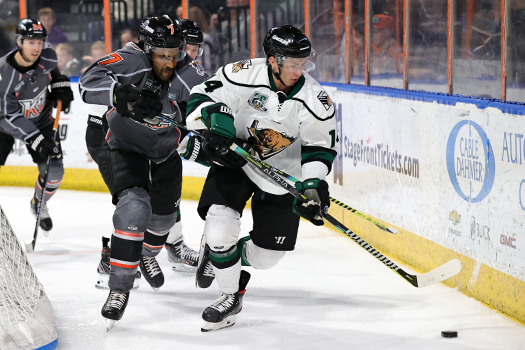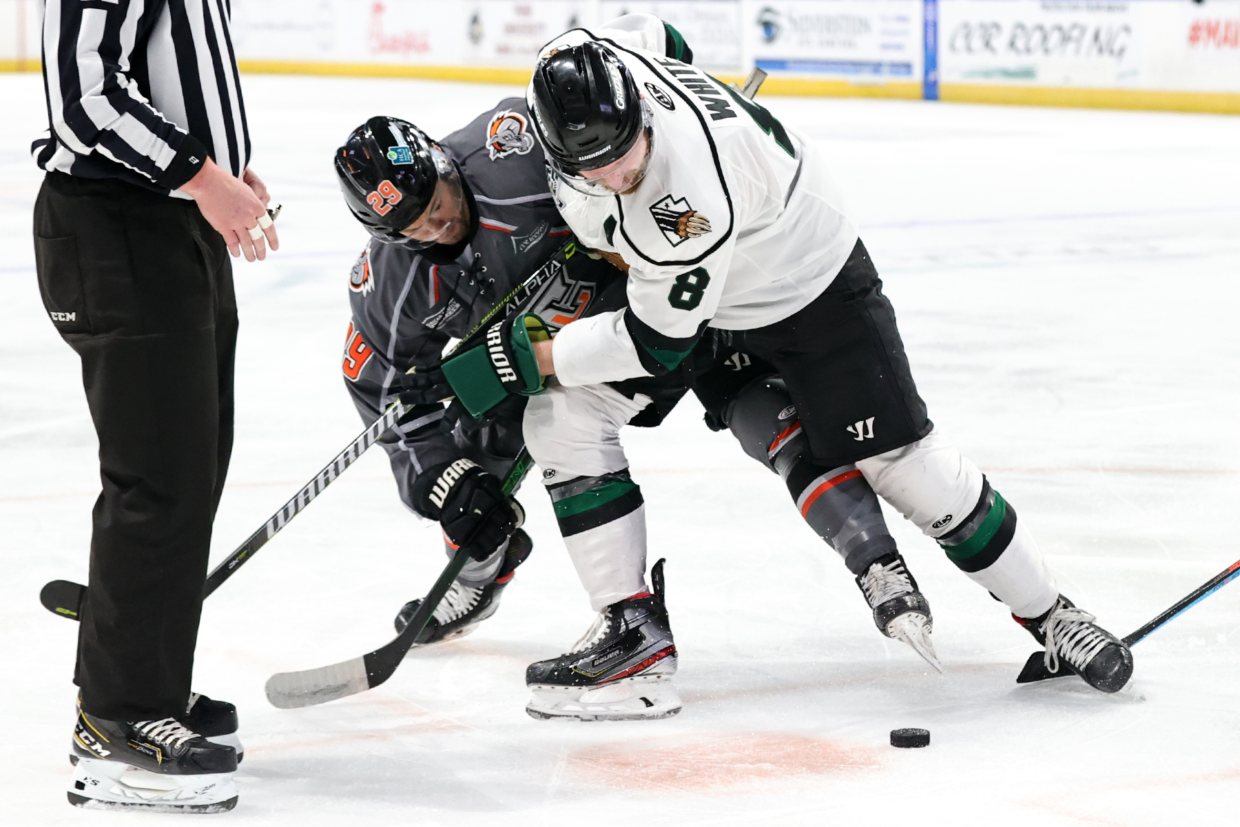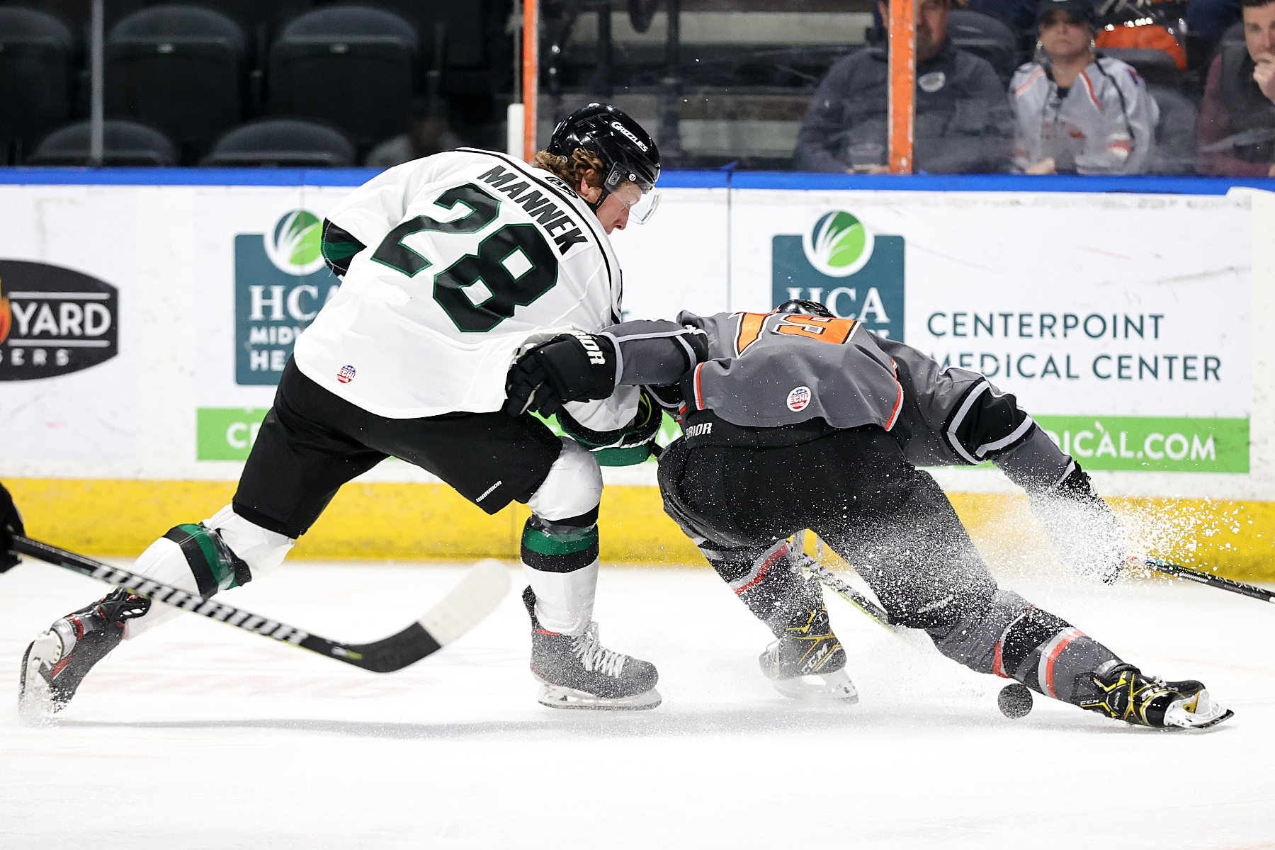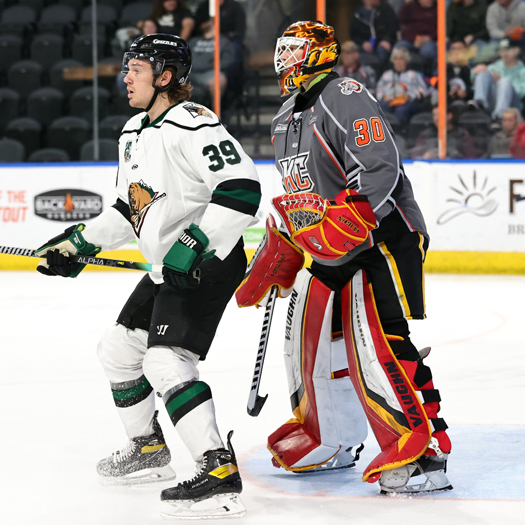 Kansas City took a 3-2 lead after Lane Scheidl redirected a Derek Angeli shot 10:58 into the third. Only 26 seconds later, Jared VanWormer made it 4-2. One minute 18 seconds later, Brady scored his 2nd of the game and Kansas City took a 5-2 lead as they won by that margin for the 2nd straight night.