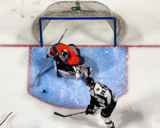 The Grizzlies jumped into the lead with 2:54 left in the middle period, when Jake Marchment buried a backhander into the net on a rebound in front, right as a Tulsa penalty was ending. Utah took a 24-15 shots advantage entering the third.