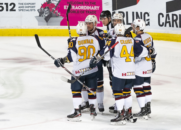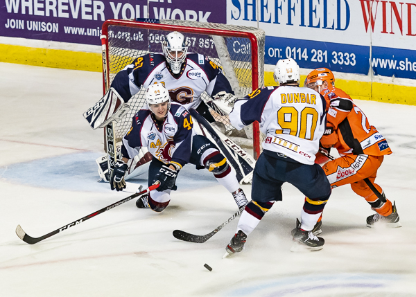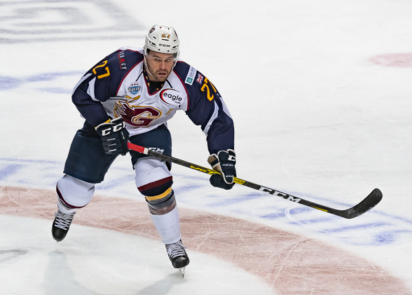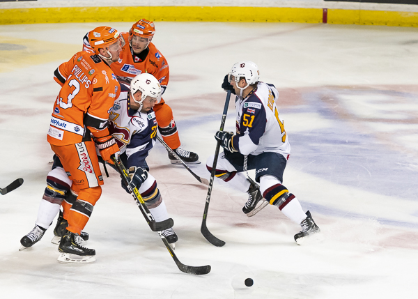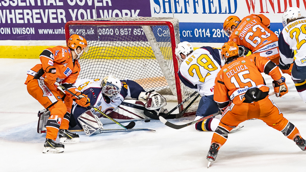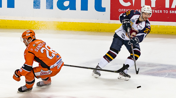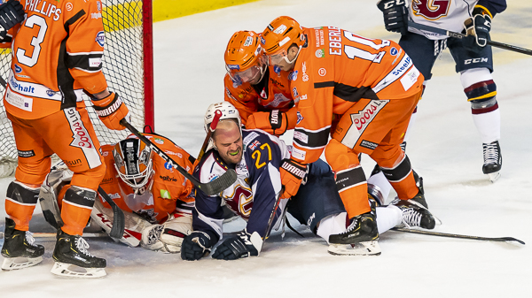 The points were as good as safe when Eberle made it 4-1 1:57 into period three, and then an Anthony DeLuca penalty shot at 43:41 made it five. Josef Hrabal extended the Steelers’ lead out to 6-1 at 47:21, with Jamie Crooks getting a late consolation for the visitors.