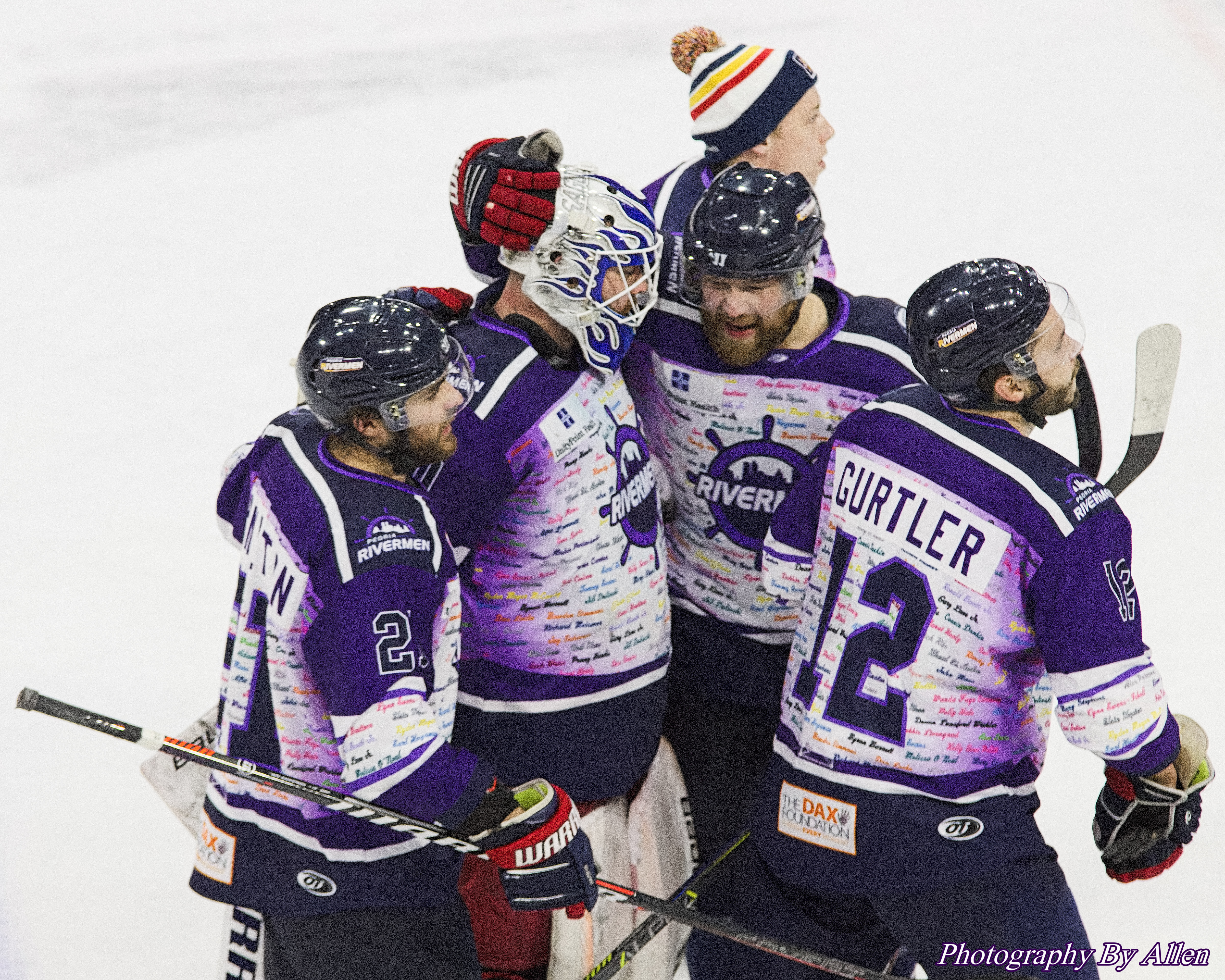 Peoria, IL – The Peoria Rivermen and Roanoke Rail Yard Dawgs exchanged goals for three periods before Guillaume Naud played hero in overtime, giving Peoria a 4-3 victory Saturday night at Carver Arena. Peoria’s third straight win improves them to 33-4-5 on the season before tomorrow afternoon’s weekend finale.