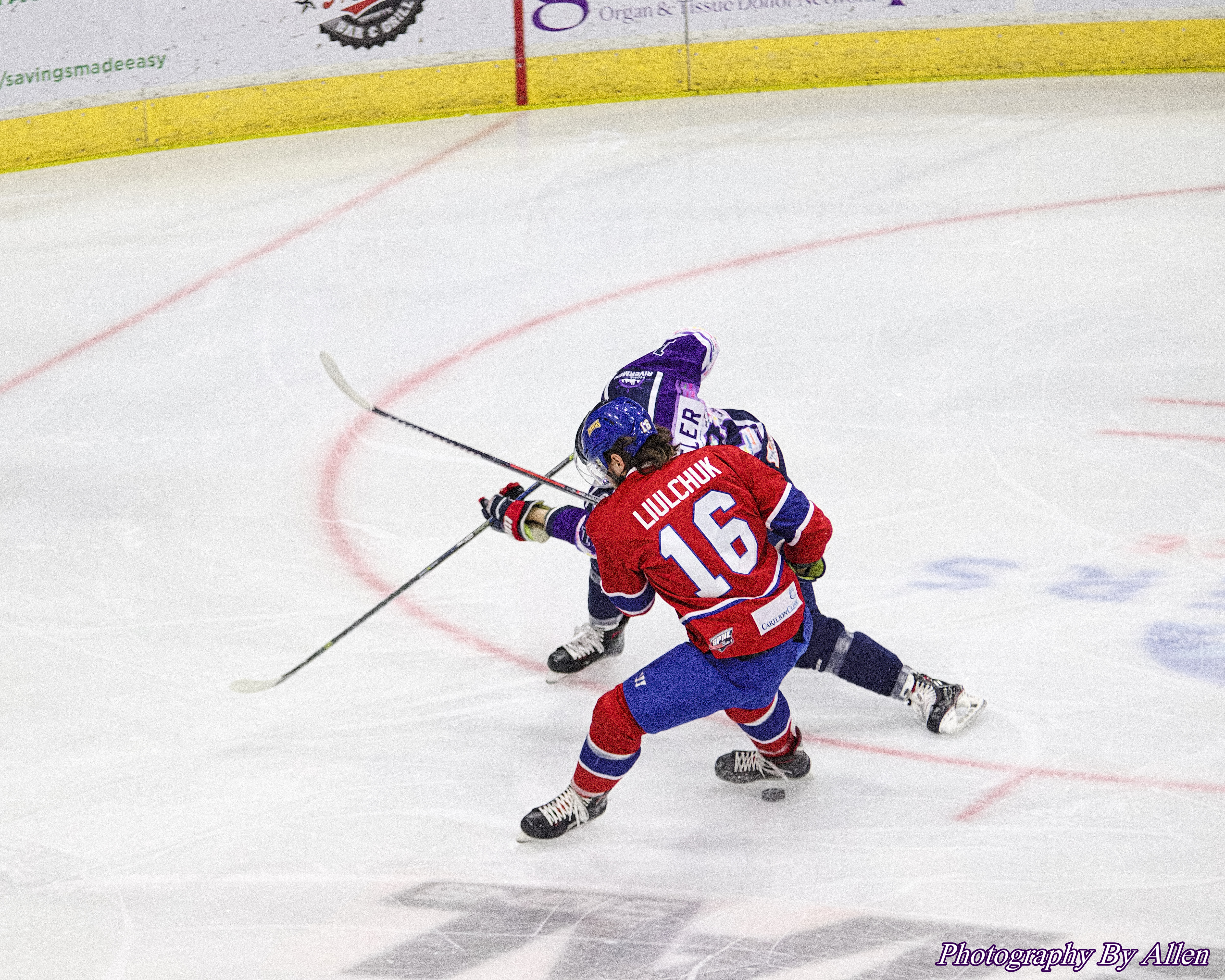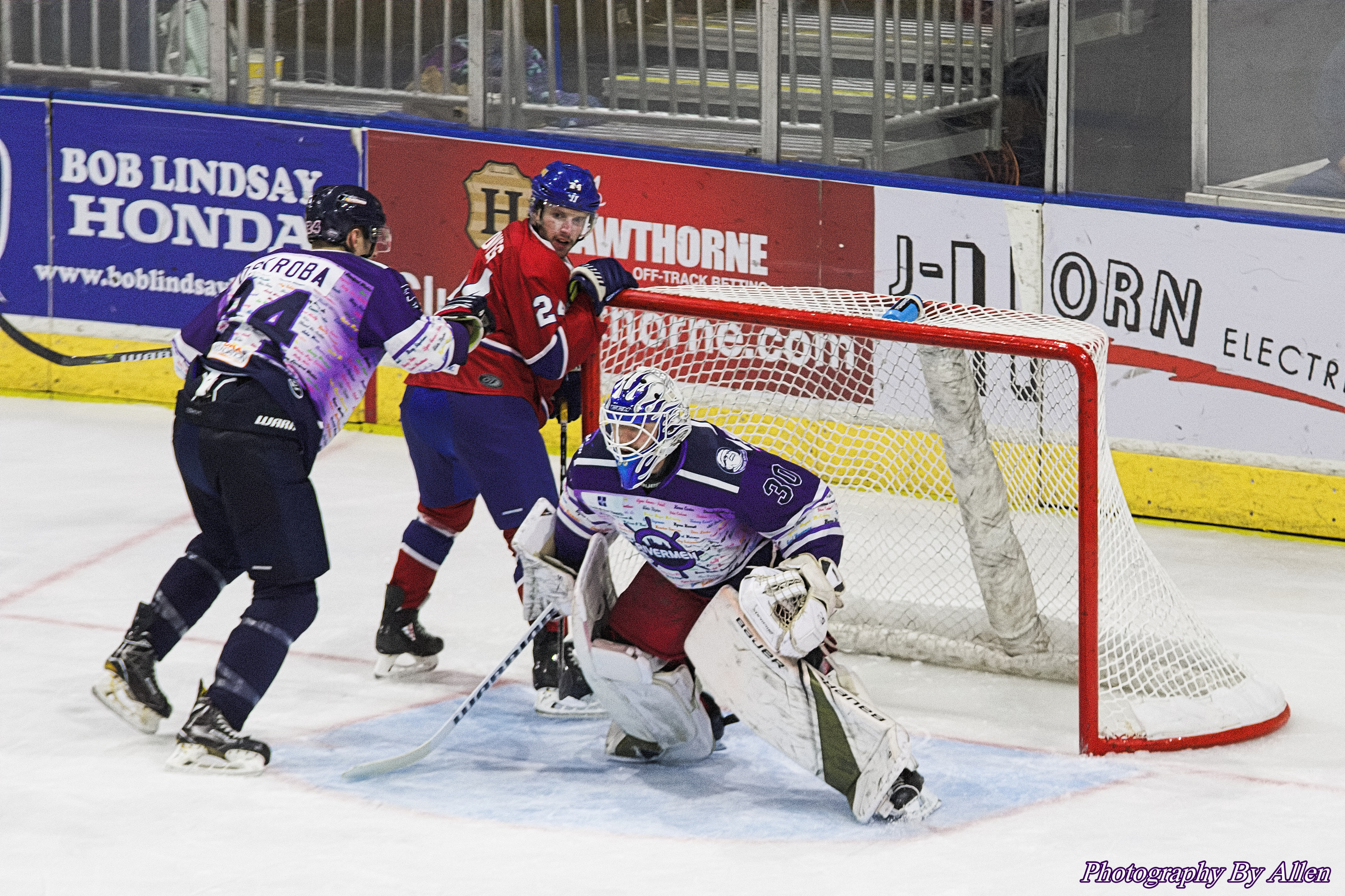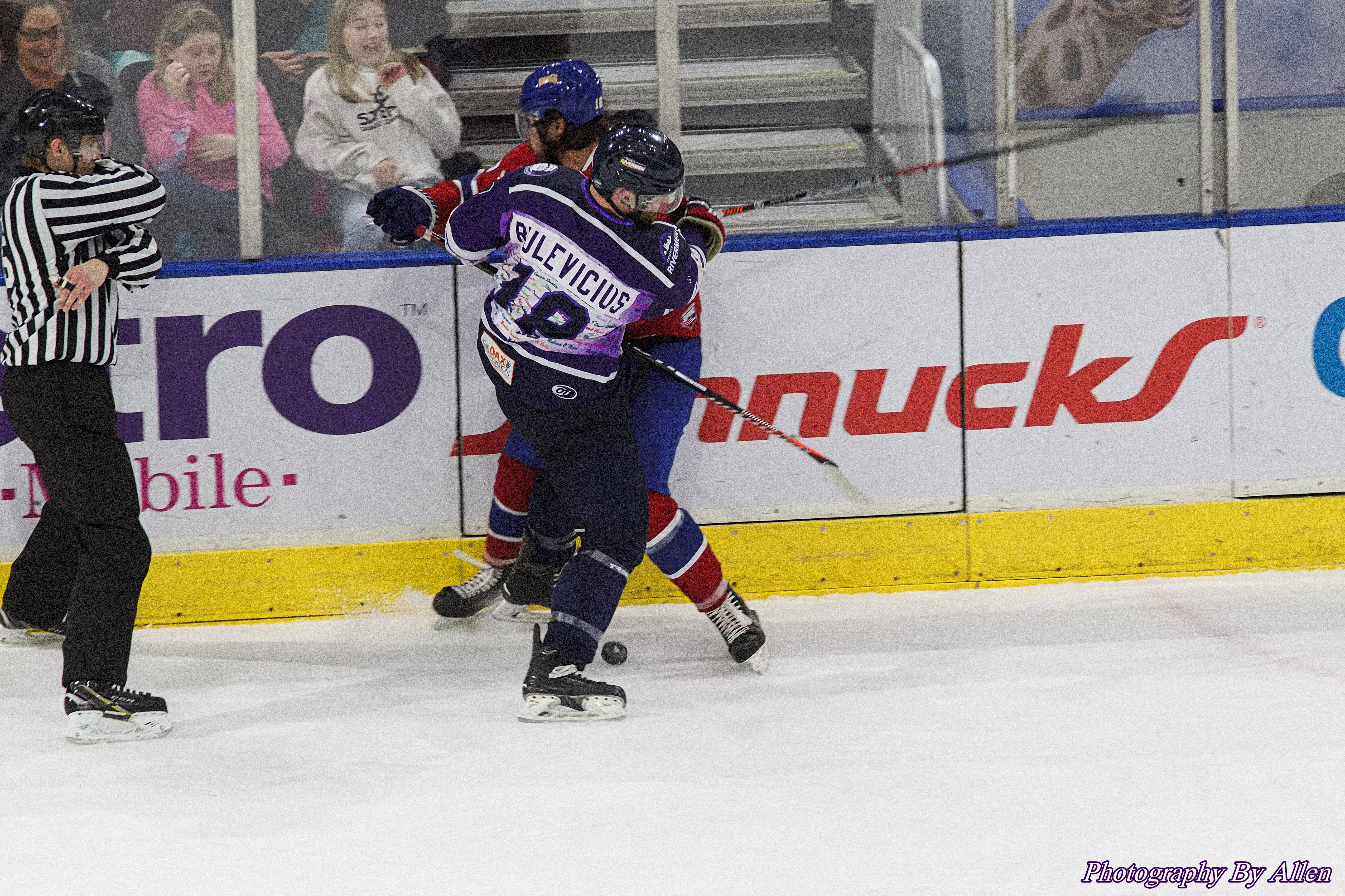 Peoria, IL – The Peoria Rivermen and Roanoke Rail Yard Dawgs exchanged goals for three periods before Guillaume Naud played hero in overtime, giving Peoria a 4-3 victory Saturday night at Carver Arena. Peoria’s third straight win improves them to 33-4-5 on the season before tomorrow afternoon’s weekend finale.
